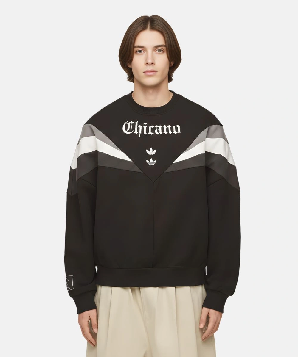 Shop Adidas x Willy Chavarria Chicano Crewneck 2.0 Black Pullover Fleece Sweatshirt – Unisex