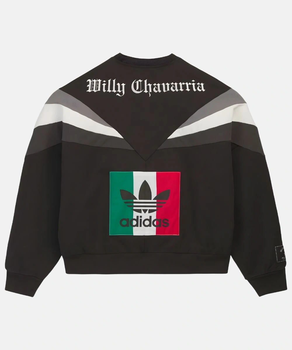 Designed with a simple pullover cut and a round crew neck collar that ensures breathability and comfort throughout. Design is highlighted with extensive graphics and patch details. It includes a bold Chicano and Adidas screen printed at the front for a sharp, modern look. The back features “Willy Chavarria” arched across the shoulders with a vibrant patch featuring the Mexican flag colors and an integrated branding logo serves as a stunning centrepiece.