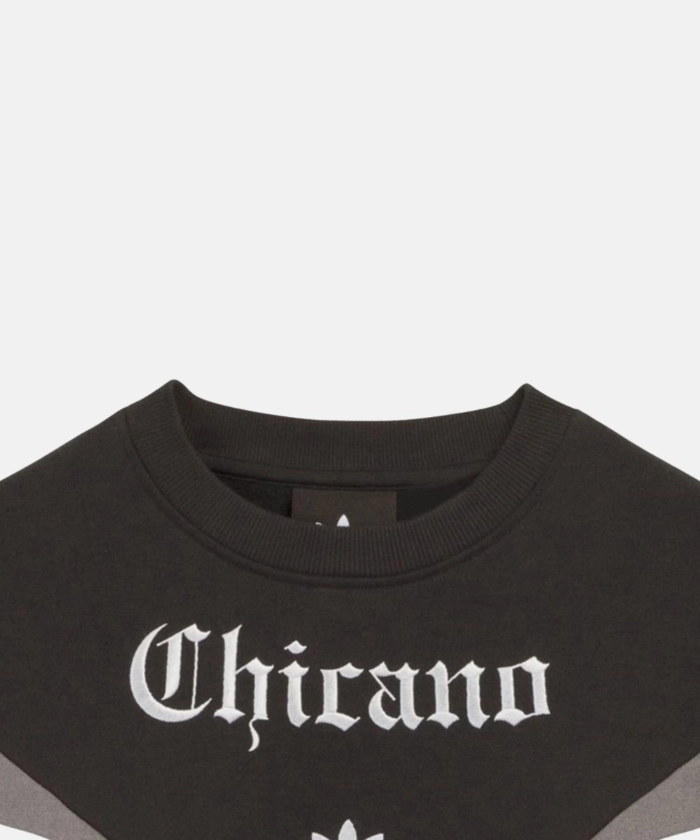 Embrace a powerful cultural narrative with the raw, high-fashion energy of the streets in this Adidas Chavarria Chicano Crewneck 2.0 Sweatshirt. It is a true masterpiece of the collaboration recreated with an oversized silhouette. Constructed from thick fleece that feels heavy and provides a premium feel, and keeps you warm. The relaxed baggy fit suits fashion-forward individuals and allows for effortless layering.Â