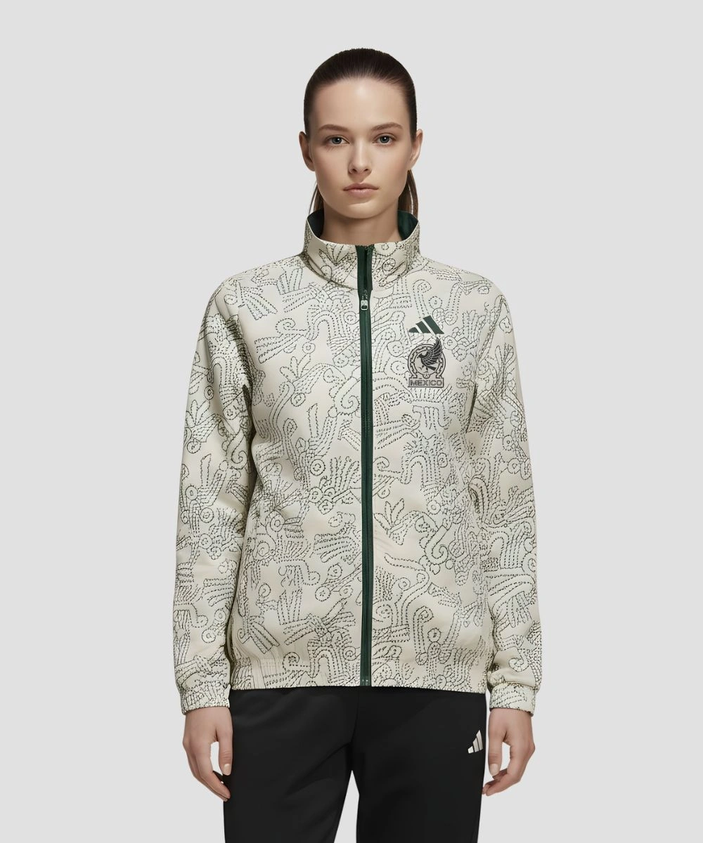 This Adidas Mexico Jacket 2026 has a lightweight feel and is incredibly versatile for fashion enthusiasts. The primary side features a modernized Mexico federation crest and characteristic three-stripe design hits down the sleeves. It is further enhanced by intricate pattern details inspired by Mexican heritage integrated into the fabric. The reversible nature of this Adidas Mexico 2026 Reversible Anthem Jacket easily shifts from a match-day essential to a standout streetwear staple. It includes elastic cuffs and a hemline to keep you warm while still providing a comfortable fit. Two zipper pockets and two side entry pockets on each side increase the outfit’s practical use.