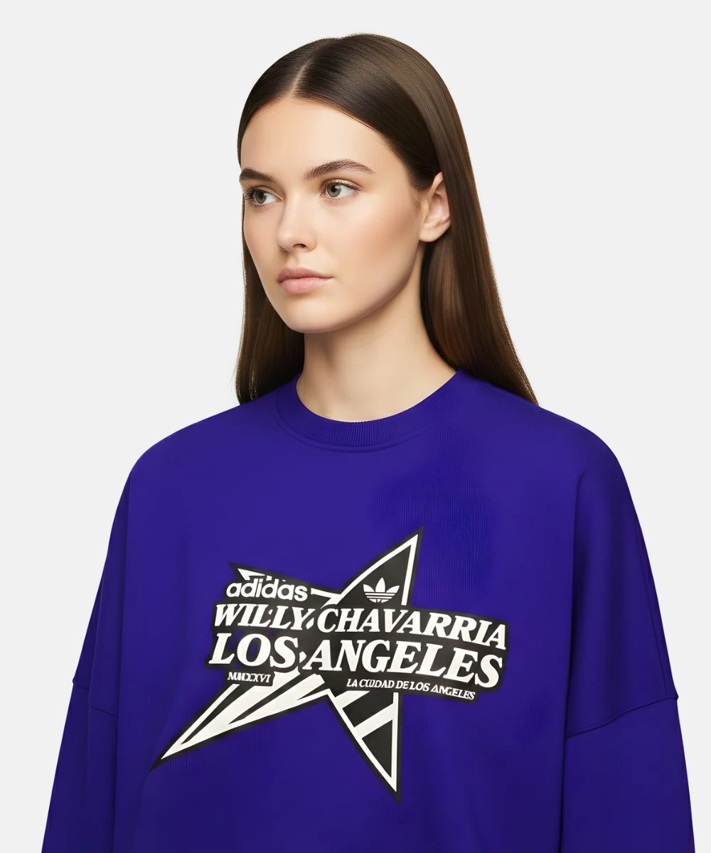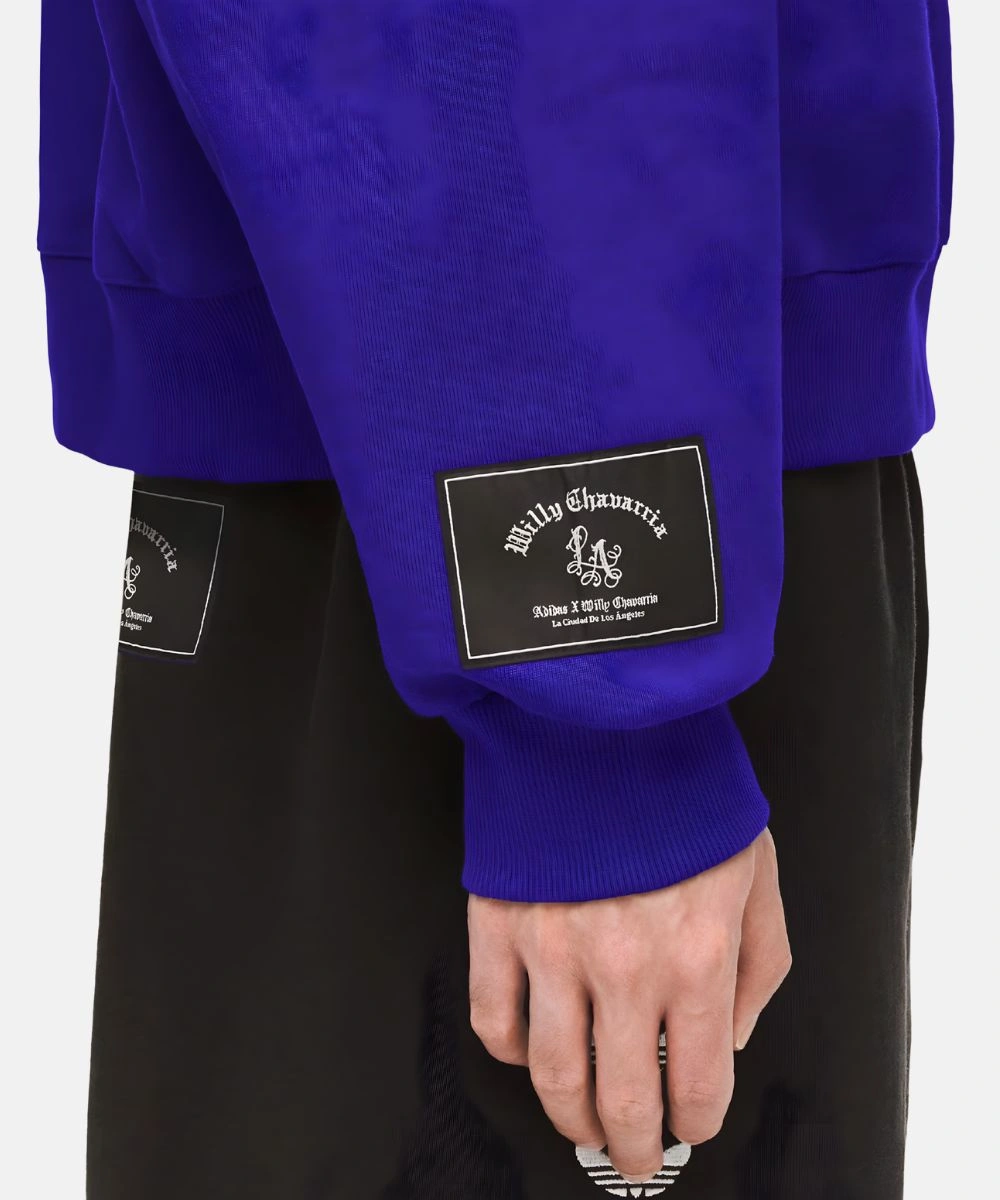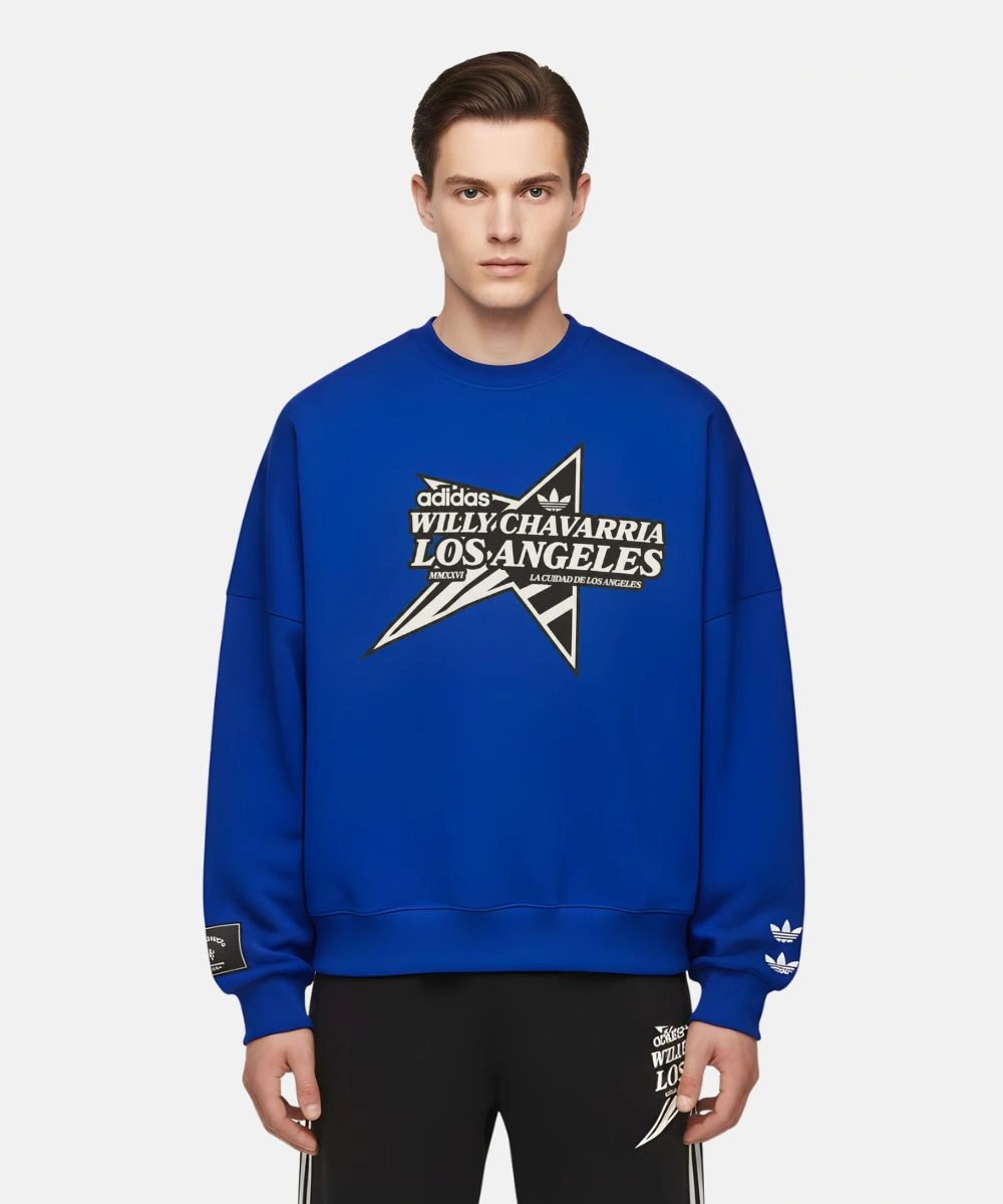 Shop Adidas x Willy Chavarria Star Logo Crewneck Fleece Pullover Blue Sweatshirt – Unisex