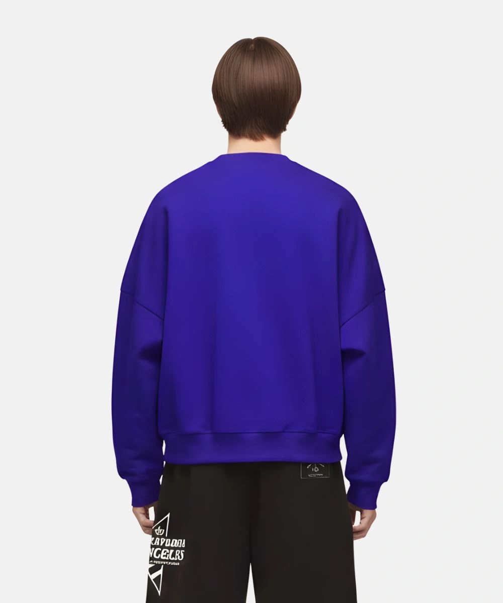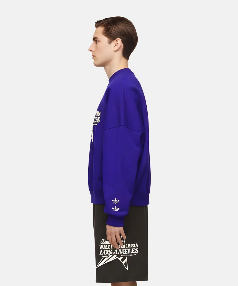 Command the room with the vibrant spirit of modern street luxury in this Adidas Willy Chavarria Star Logo Crewneck Sweatshirt. Made with a heavyweight fleece that provides a nice drape and offers pure warmth. Its royal blue color is deep and bright, which is ideal for making a bold statement without saying anything. This piece mixes the iconic three stripes sports style with Willy Chavarria’s modern fashion touch to create a bold yet polished look.