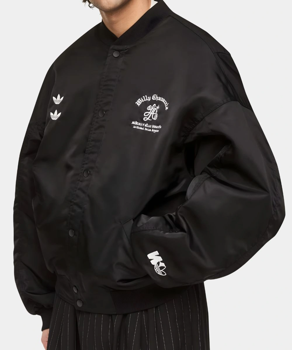 Shop Adidas x Willy Chavarria 2026 Coaches Black Satin Jacket For Men & Women