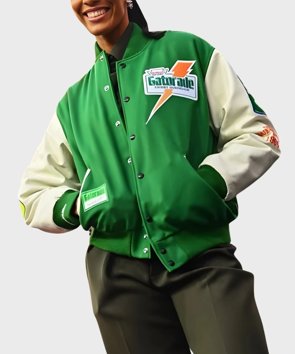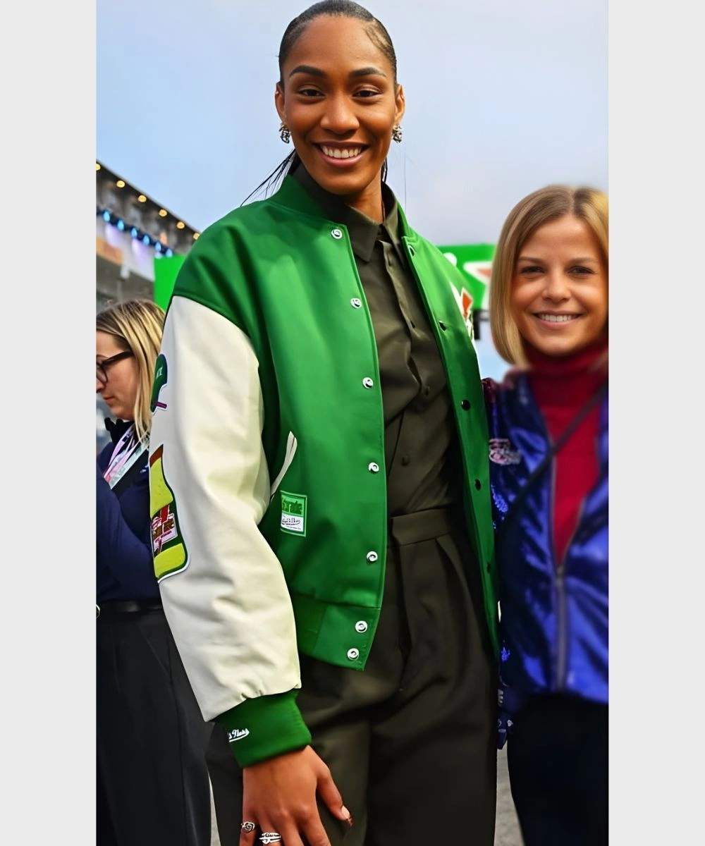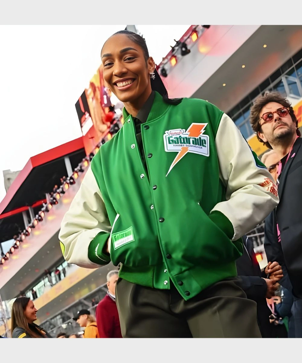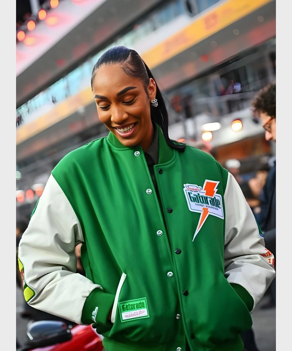 American Basketball Player A’ja Wilson Gatorade Green & White Varsity Bomber Jacket
