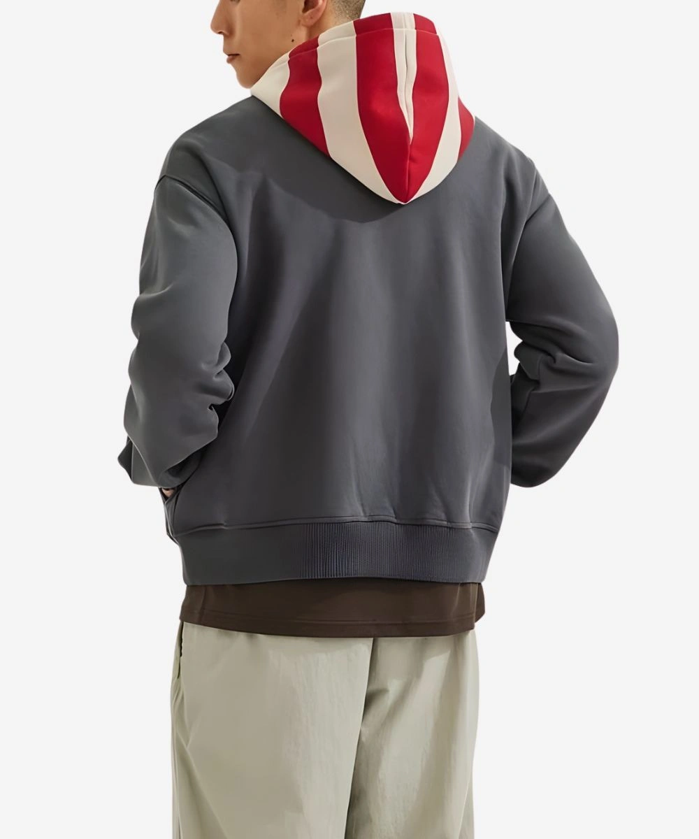 This Arsenal x A-COLD-WALL* Match Day Hoodie is an ultimate match day hoodie with a bold yet refined edge. Built from thick fleece that feels comforting and offers a statement style. It is designed with a grey base with a contrasting hood that adds a visual impression and streetwear flair. The fabric is brushed for maximum coverage and warmth. Its relaxed cut yet structured fit has zip zip-through silhouette that balances easy layering and effortless style. The Unisex Arsenal x A-COLD-WALL Match Day Grey Zipper Hoodie has striped hood details for a stylish look and drawcords to adjust the fit. It has elastic cuffs, and the waist is stitched with rib knit details to give a snug fit and a structured finish.