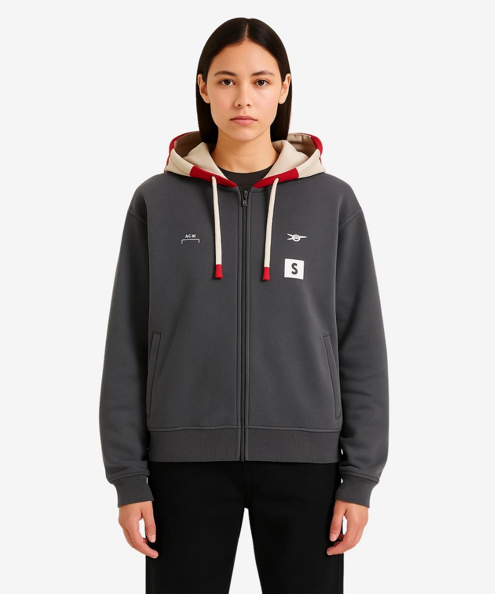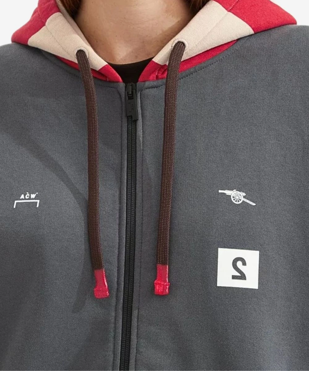 ​This hoodie is the coziest high-fashion style that you will ever wear. The front showcases a screen-printed Arsenal and ACW logos for a sports identity. Shop Unisex Arsenal x A-COLD-WALL Match Day Grey Zipper Hoodie and enjoy a bold and comfortable match day look. It comes with two side pockets to keep your hands cosy and carry everyday essentials.