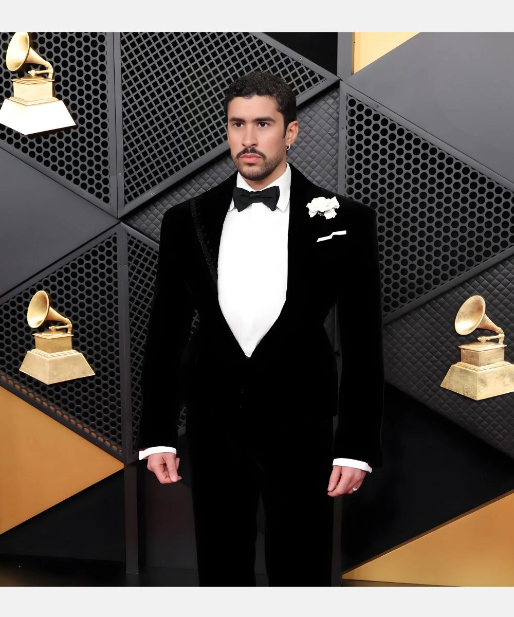 Puerto Rican Rapper And Singer Bad Bunny 2026 Grammy Award Black Velvet Blazer