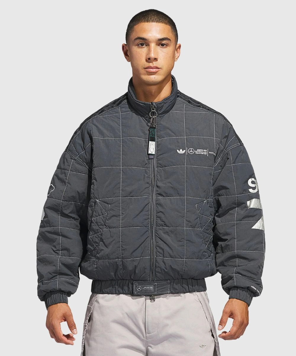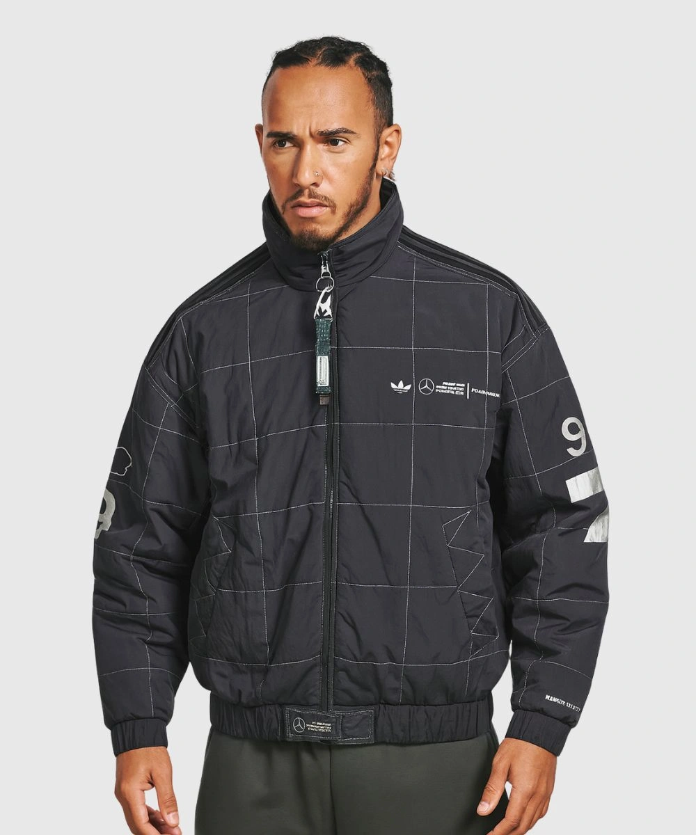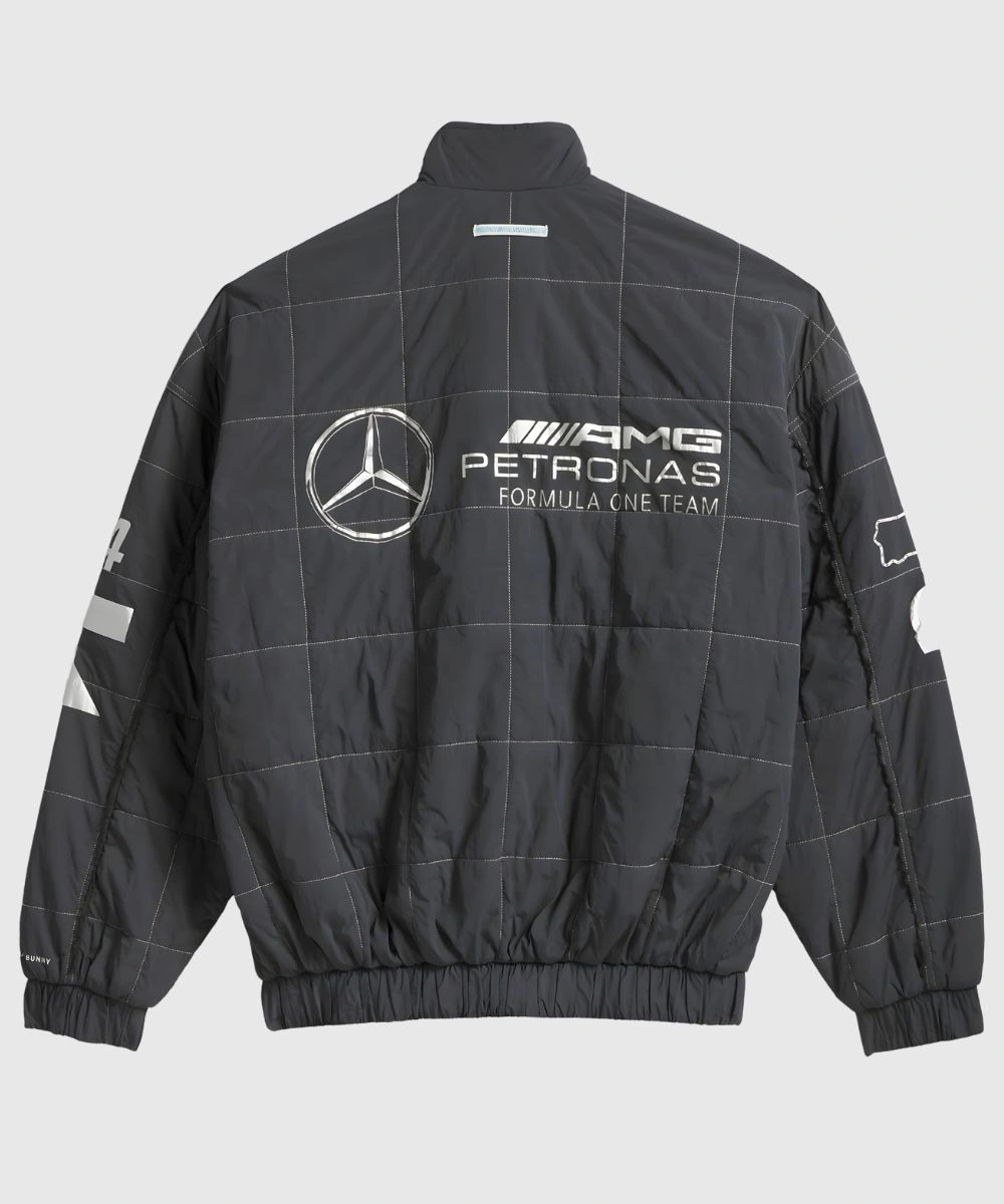 Step into the pit lane of style with the exclusive AMG F1 Racing Jacket. Designed for those who want the high-octane energy of motorsport with an urban fashion edge. It is a cotton-made design with an oversized silhouette for city streets or race weekend looks. The plush texture is comforting and keeps you cosy throughout the day. It has a contrast grid stitching throughout that gives it a dynamic, quilted appearance. Design features a stand-up collar for a sleek yet structured appearance. The full zip fastening with a bold pull tab ensures easy wear and a secure fit.Â