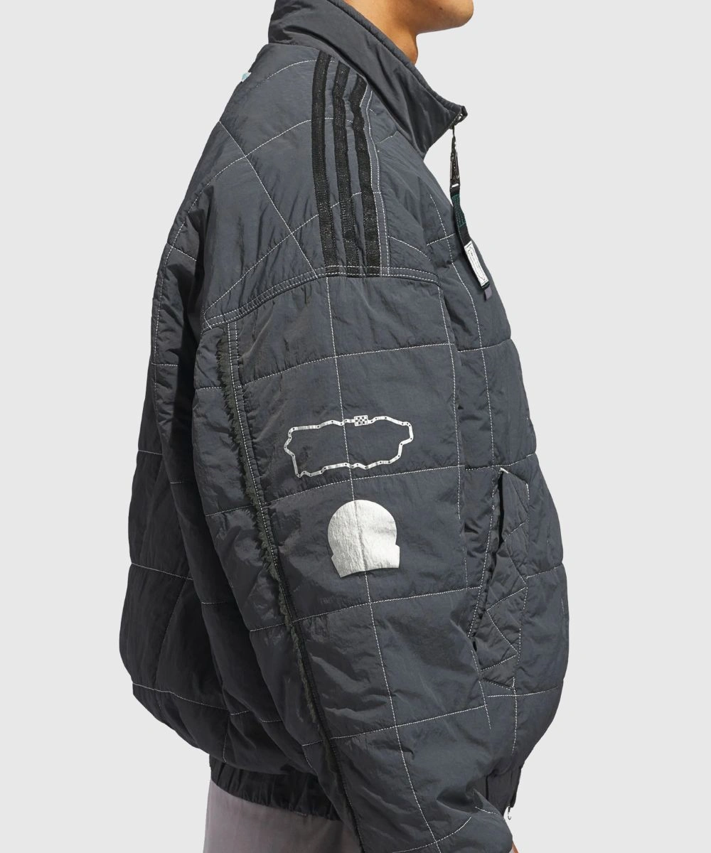 Perfect for those who live boldly and move fast, this Taylorjon Bad Bunny x Mercedes jacket is a statement piece for city streets or race weekend looks. The Adidas logo, Mercedes Petronas, and Formula One print on the jacket reflect your allegiance and racing heritage. Elastic cuffs and hem give the overall style a tailored yet relaxed fit. This Grey Bad Bunny x Mercedes AMG Petronas Formula One Team Jacket delivers performance, attitude and premium design in equal measure. Its shoulder has striped detailing, while the sleeves have graphic print for added enhancement. This jacket is an identity, tuned for fans of speed, style and standout moments.