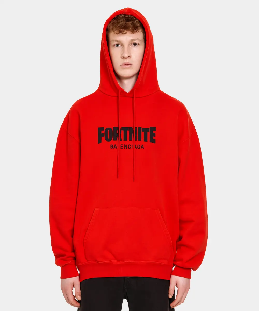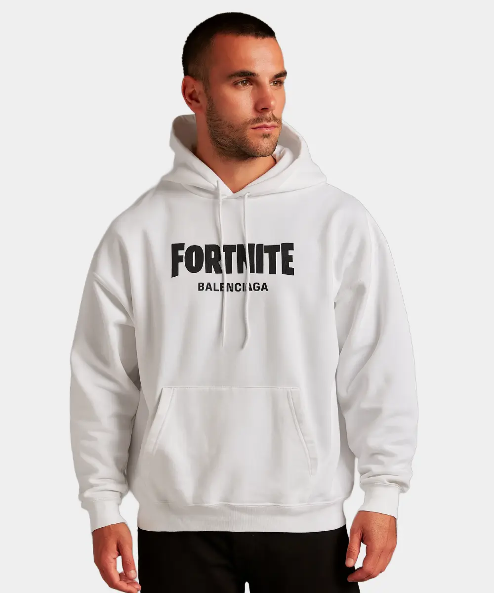 The Balenciaga x Fortnite Hoodies are a luxury fashion drop straight into your style game. Made from thick fleece and bold appeal, it has a vibrant base featuring a bold Fortnite, Balenciaga branding at the chest. It reflects the iconic collaboration and adds a signature touch to your style. The soft fabric feels gentle against the skin and keeps you toasty during the coldest days.  Balenciaga x Fortnite Unisex Oversized Pullover Hoodie – White, Red & Black features a simple pullover closure to slip in with ease. It wicks away moisture while shielding the neck from chilly breezes.