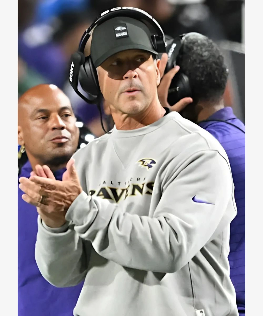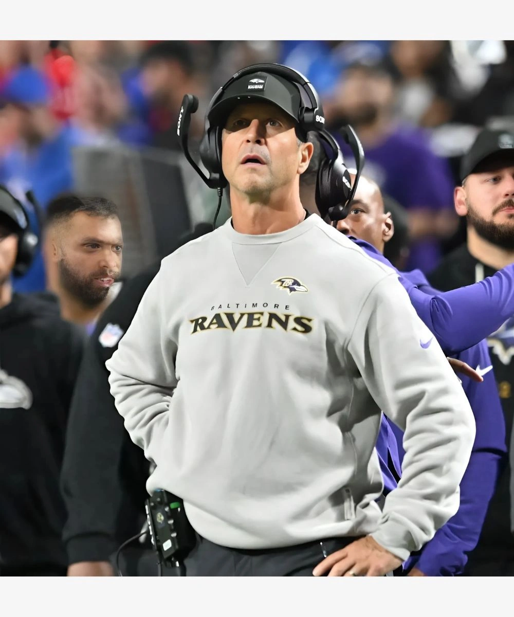 Shop Baltimore Ravens John Harbaugh Grey Sweatshirt