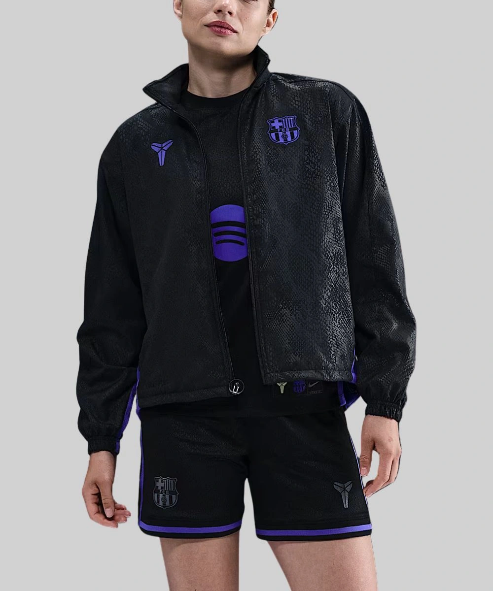 The Barcelona Nike Mamba Away Full-Zip Track Jacket 2025/26– Black offers easy layering while keeping the style effortlessly sharp. It has vibrant purple side panels for a modern color block look. The jacket also has loose full-length sleeves and elastic cuffs for all-day comfort. It also has a cosy space for hands and keeps essentials secure. This jacket is perfect for fans and athletes who like unmatched versatility with a practical touch– Shop Now