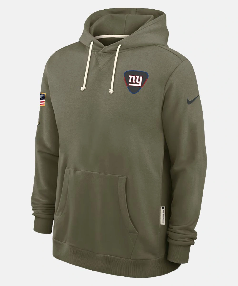 The roomy hood has drawstrings for customizable closure. It is super comfortable and great for layering on game days and everyday wear. Full length sleeves feature Salute to Service ribbon patch, U.S flag patch and Nike logo. It represents the Giants with heart and honour. The design also features a handy pouch pocket for keeping your essentials.