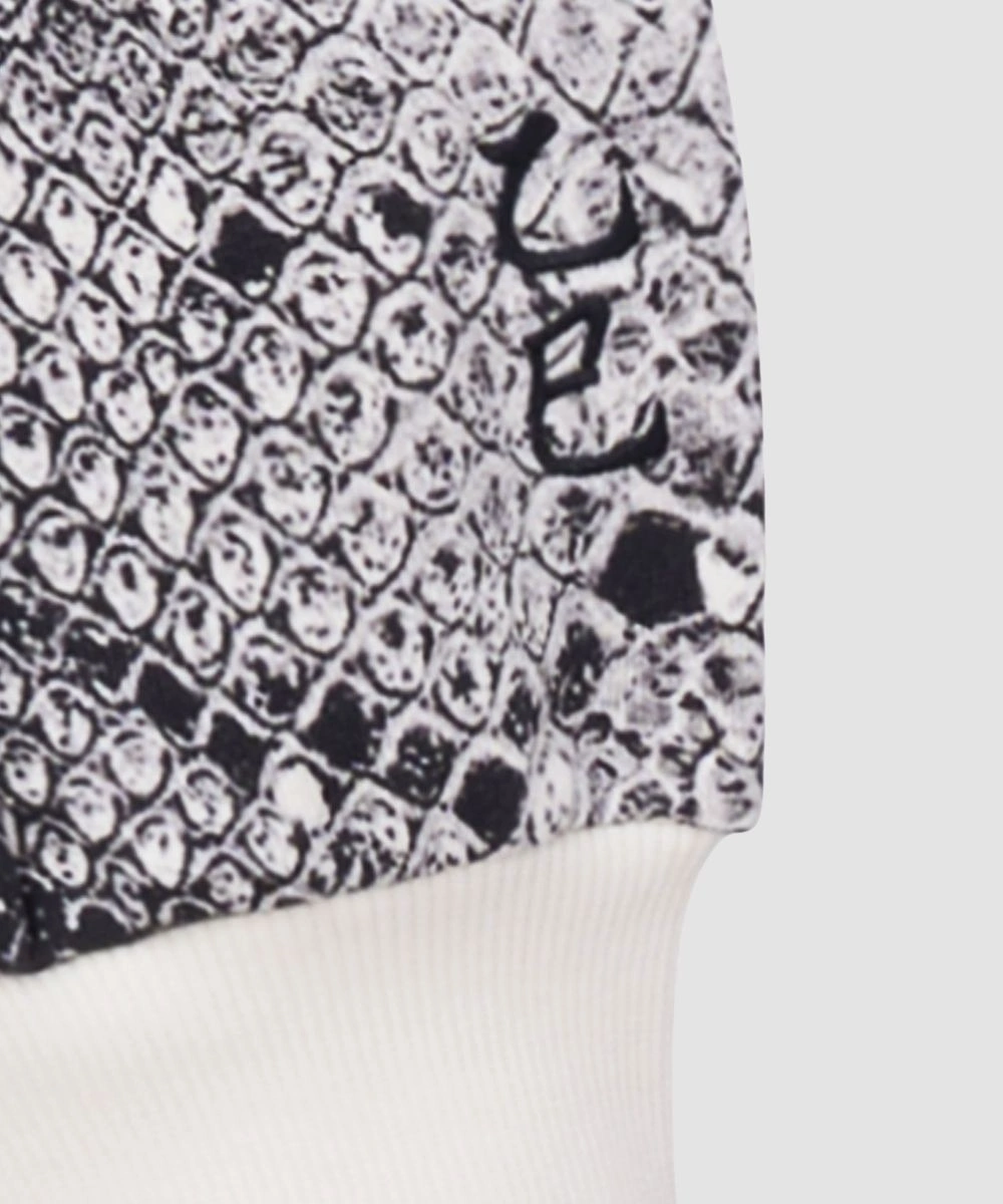 Get ready to turn heads with classic comfort and bold design that creates a powerful, unified look. It is built from fleece with a wild snake pattern that gives streetwear energy and cosy warmth. The pullover design provides a seamless yet relaxed look. It is easy to style and offers customized comfort with its drawstrings. Ribbed cuffs and hem maintain firmness and provide an elegant appearance. It features a spacious hood that is plush on the interior and shields you from the nighttime chill.