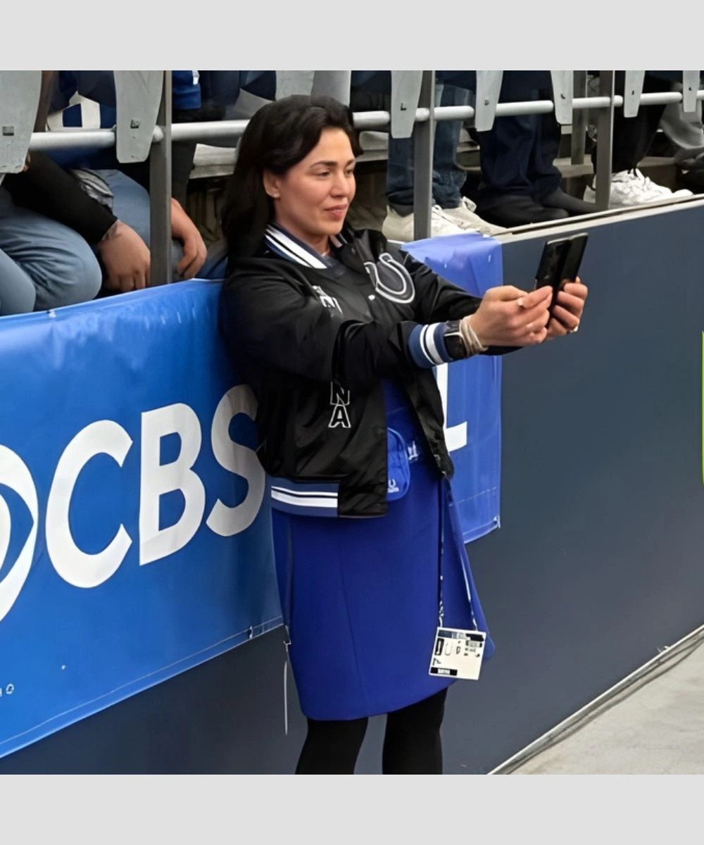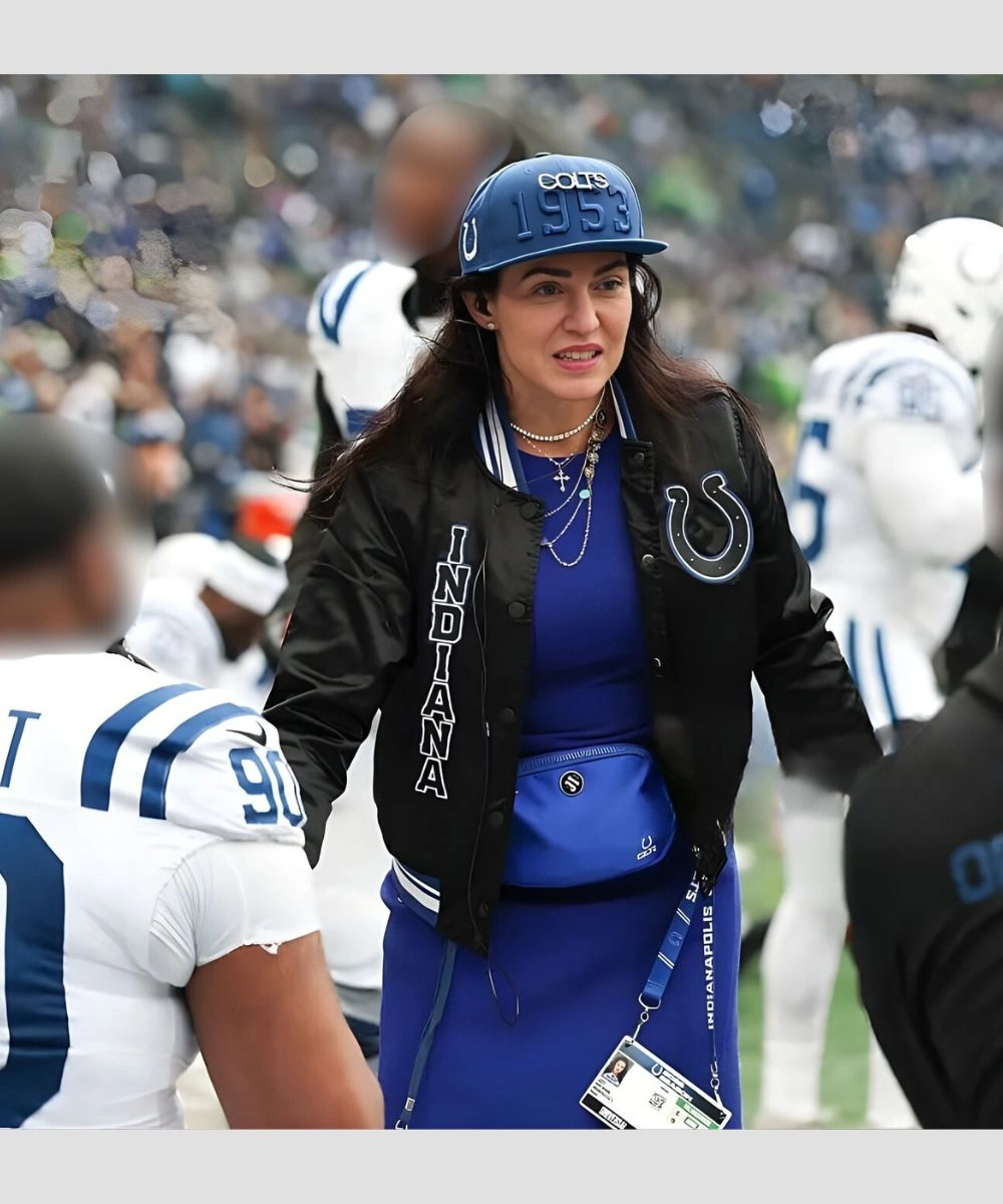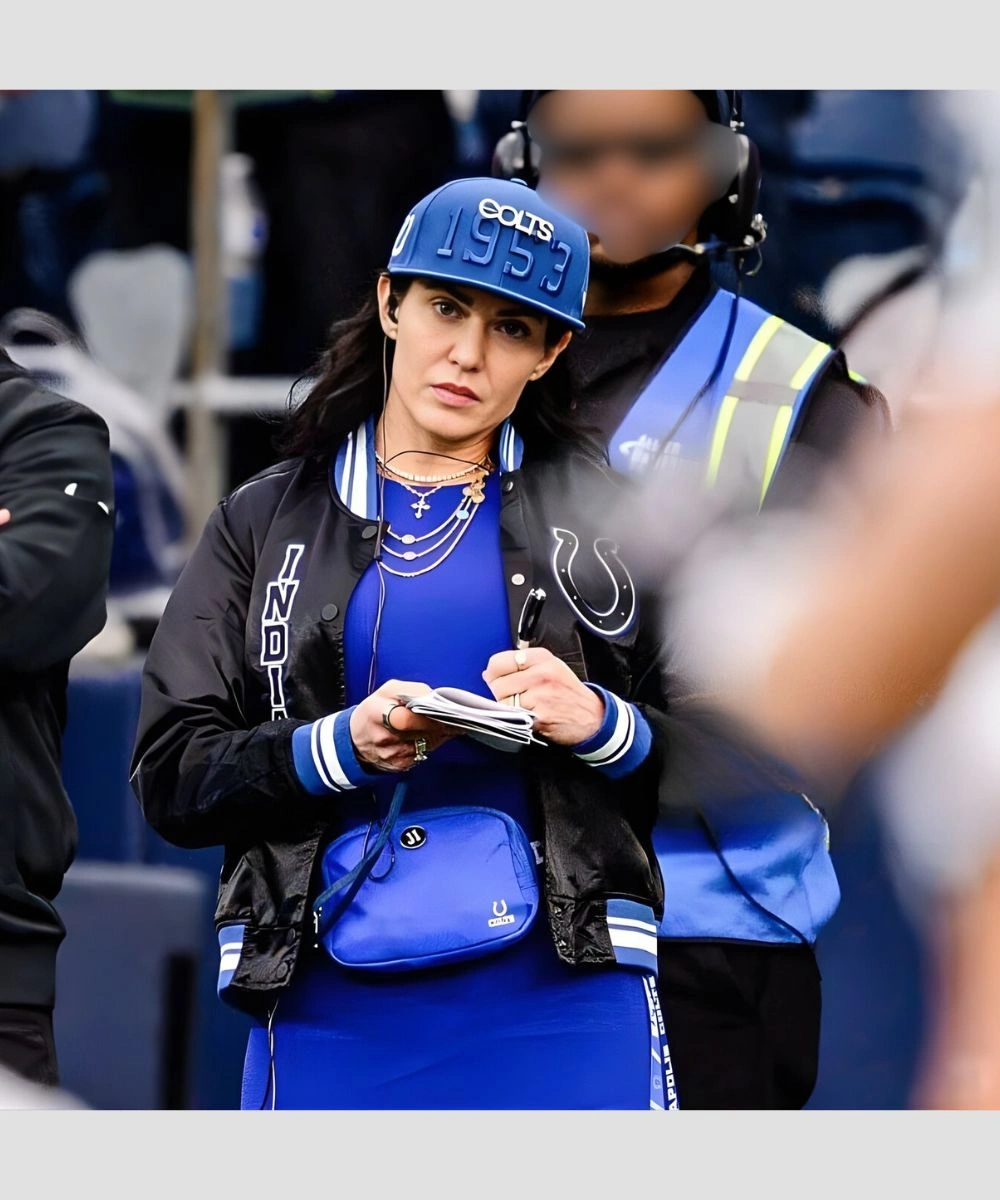 Shop CEO Of The Indianapolis Colts 2025 Carlie Irsay-Gordon Indianapolis Colts Satin Bomber Jacket – Black