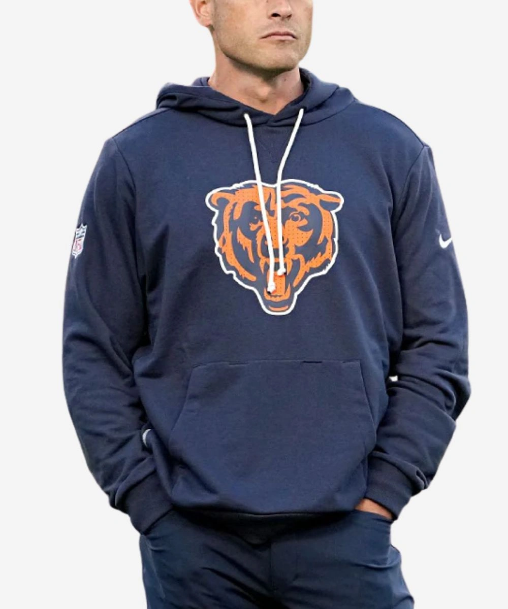 Step into heart and hustle and show your team spirit loud and proud in the Chicago Bears Ben Johnson Sideline Hoodie. Premium fleece in the Bears’ classic colors makes it a bold statement piece for game days and everyday wear. It features a navy blue base with a striking orange Chicago Bears signature logo at the chest. The design includes a relaxed yet sporty silhouette with a roomy pullover cut. It’s loose enough to layer comfortably underneath while ensuring maximum comfort. Shop Ben Johnson Chicago Bears Nike Sideline Pullover Fleece Hoodie – Navy Blue to represent bold bear style without sacrificing comfort. It has a roomy hood that adds extra coverage, while drawstrings add a custom fit.