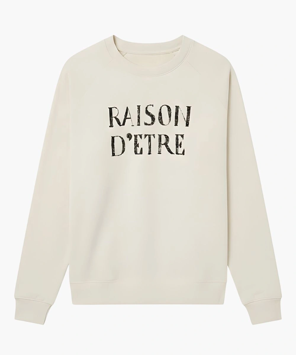 Embrace the witty charm of classic lounge style with a relaxed, smart edge in this Raison D’Etre Sweatshirt. This piece is inspired by Christa Miller’s effortlessly cool style in Shrinking Season 3. Its mid-weight premium fleece construction has a plush feel and a structured shape. Tailored with a traditional round crewneck collar and sturdy knit cuffs for a customized silhouette. The pristine white canvas highlights striking typewriter-printed designs on the chest and back. The font is designed with a basic yet smart approach that appeals to both fans and fashion lovers.