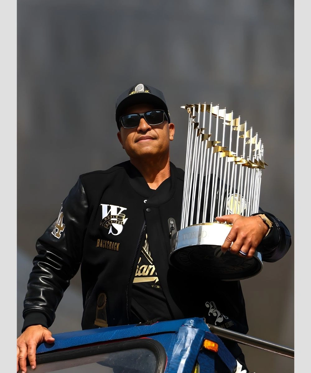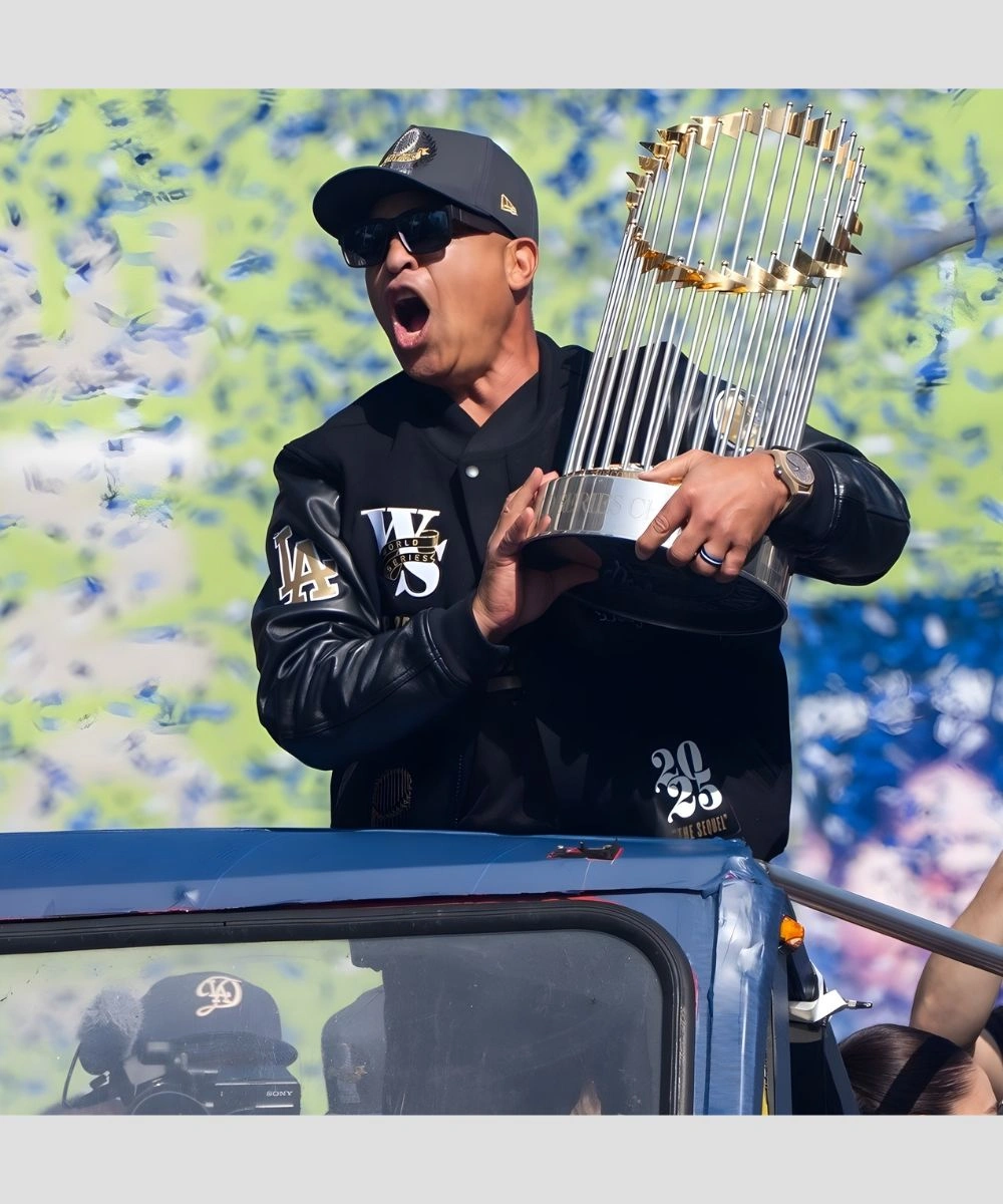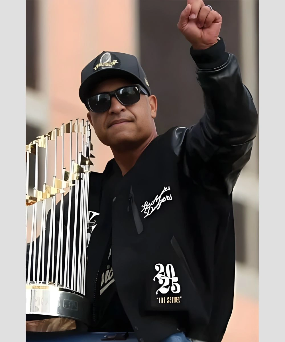 Celebrate the Dodgers’ win with this special edition Dave Roberts Dodgers World Series Championship Parade Jacket. It is a bold tribute that blends sporty legacy and true varsity classic. Design features a wool body stitched with leather sleeves and rib knit cuffs. It is inspired by the famous Dodgers Major League Baseball manager. The stylish design is perfect for fans who want team and coaching pride. It provides a clean silhouette and ensures everyday comfort.