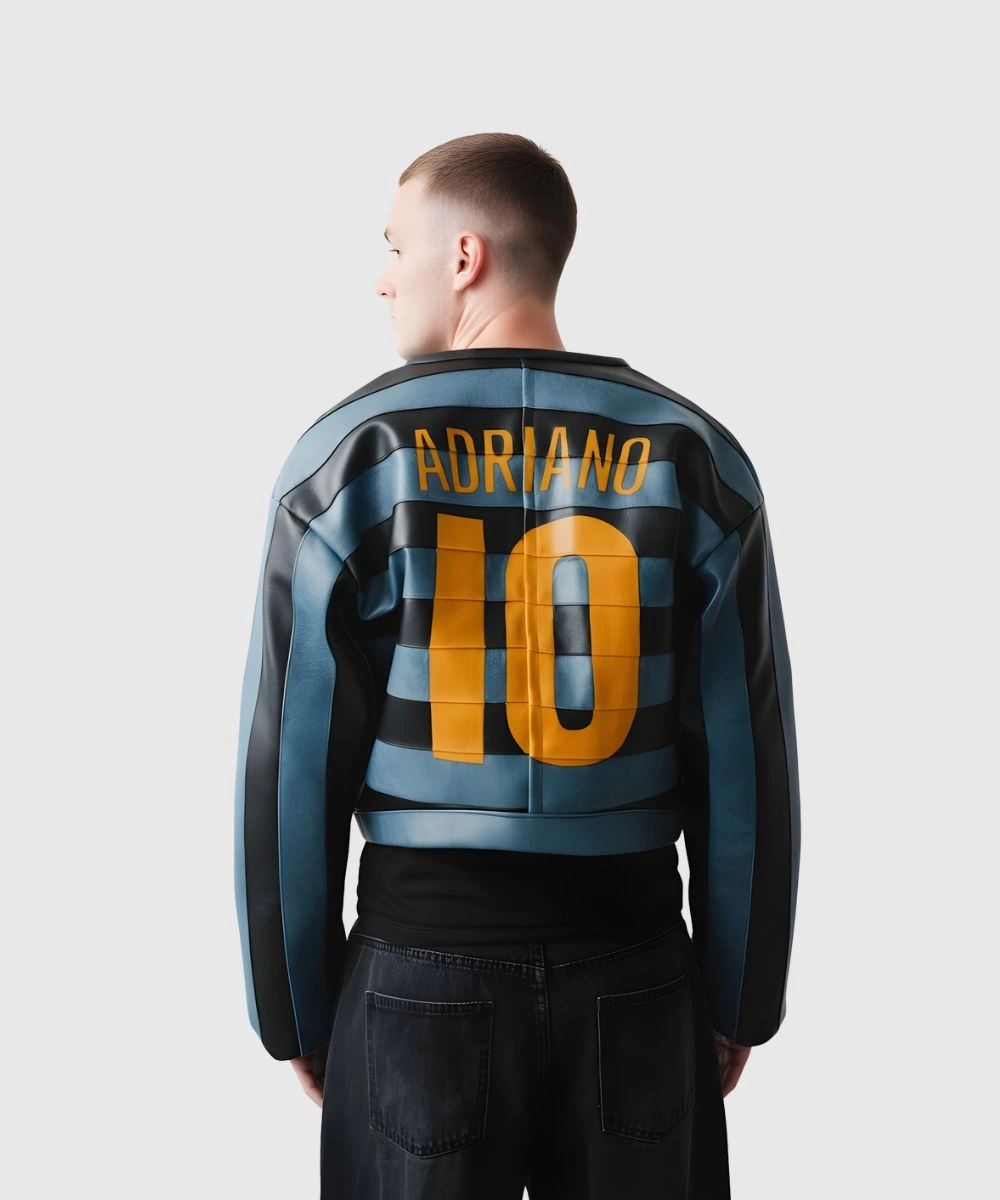 Shop Dedictd Milan Adriano 10 Heavy Leather Jacket – Blue / Black / Yellow