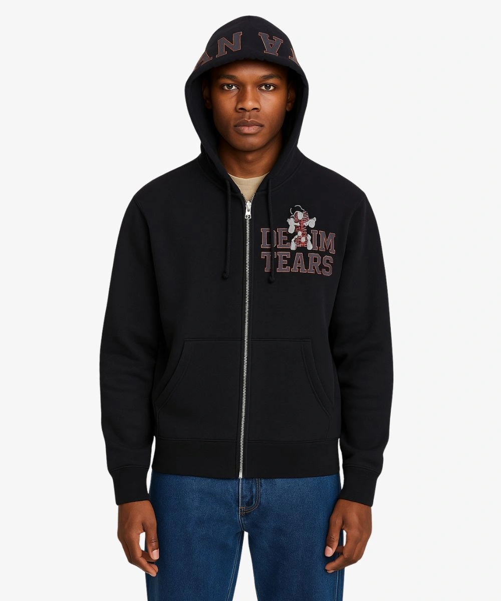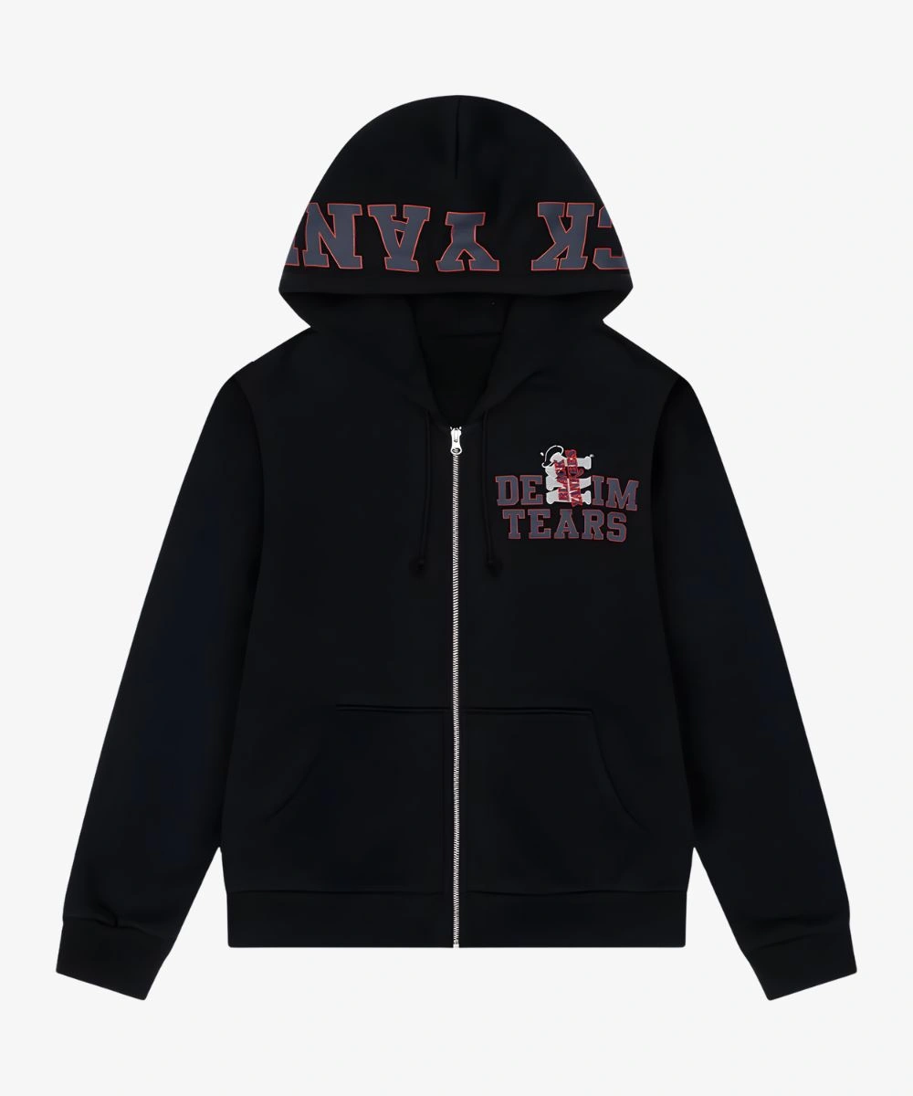 Step into bold streetwear with the Black Zip Hoodie. This standout piece combines team heritage with modern edge and pairs effortlessly with your favorite outfits. Its soft fleece has a perfect balance of comfort and warmth. The full zip offers flexible wear and gives you a sleek look. You can pull it up for a layered style or leave it open for a casual appearance. This hoodie has a striking Denim tears print alongside Black Yankees embroidery. It is designed with attention and is an ideal piece for fans and style seekers alike.