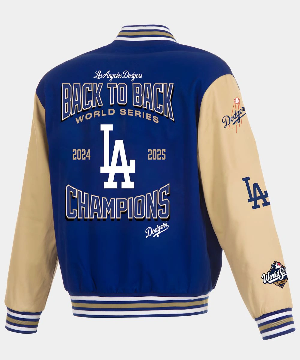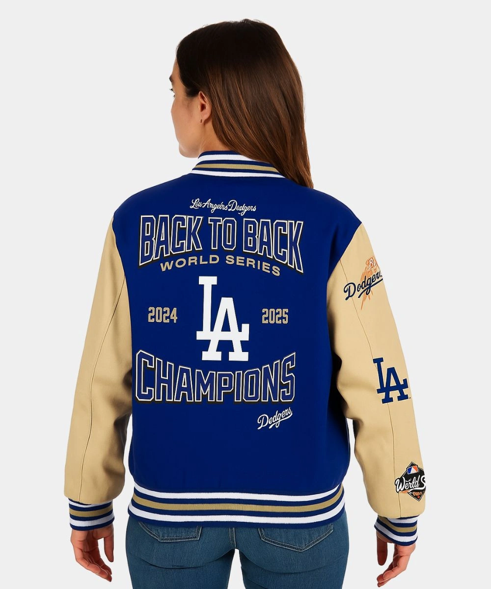 Step up your fan wear game with a blend of heritage and celebration in one go-to layer. This Dodgers JH Design World Series Champions Jacket is a standout piece that celebrates the Dodgers’ big win. It is crafted from wool fabric and has contrast leather sleeves for classic and comfortable wear. It has a soft lining for breathable comfort and a soft warmth layer during cold weather. This JH Design 2025 World Series Champions Jacket has multiple LA Dodgers and 2024-2025 World Series Champions-inspired embroidery at the front and back. It gives a premium look and marks this historic achievement.