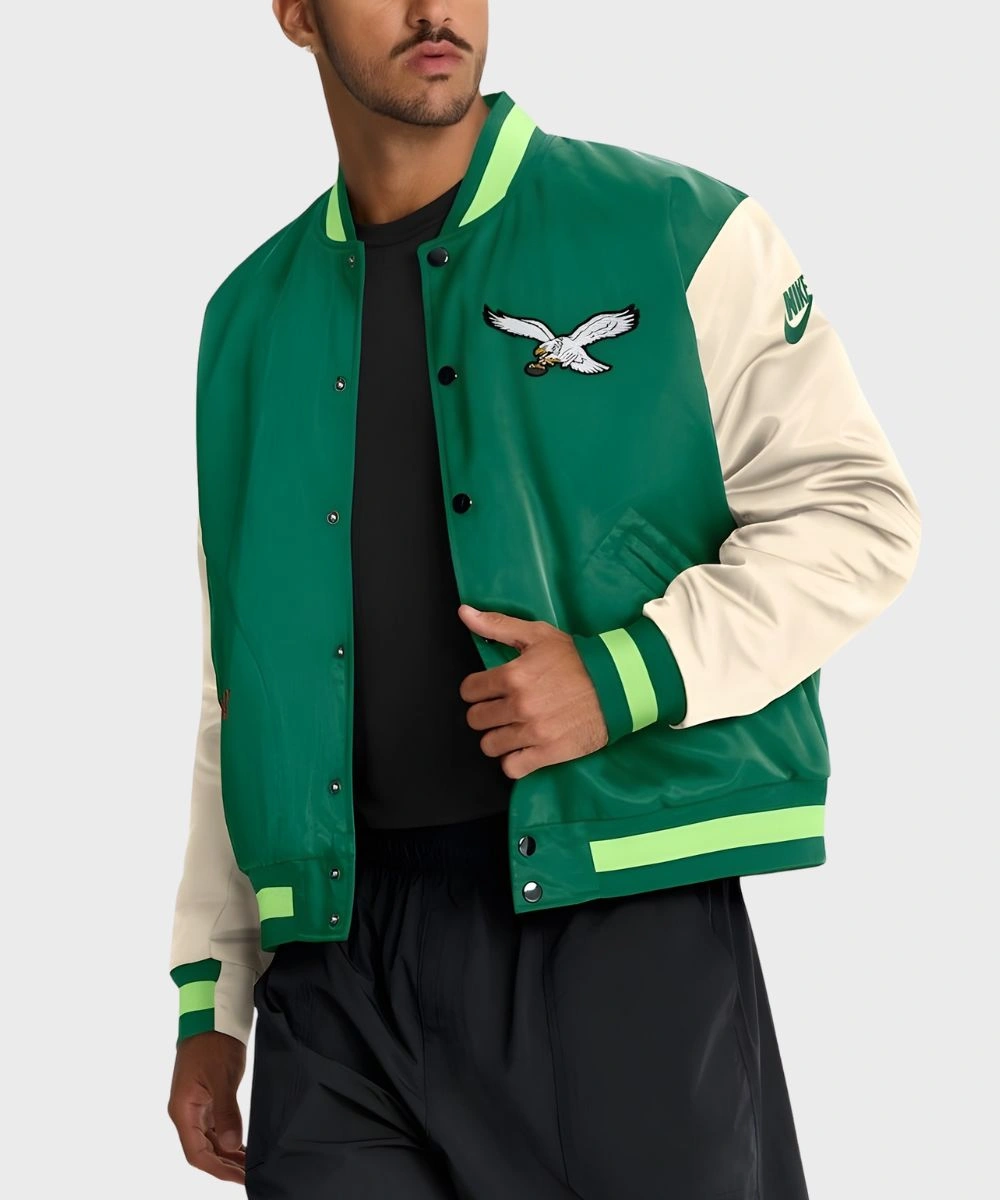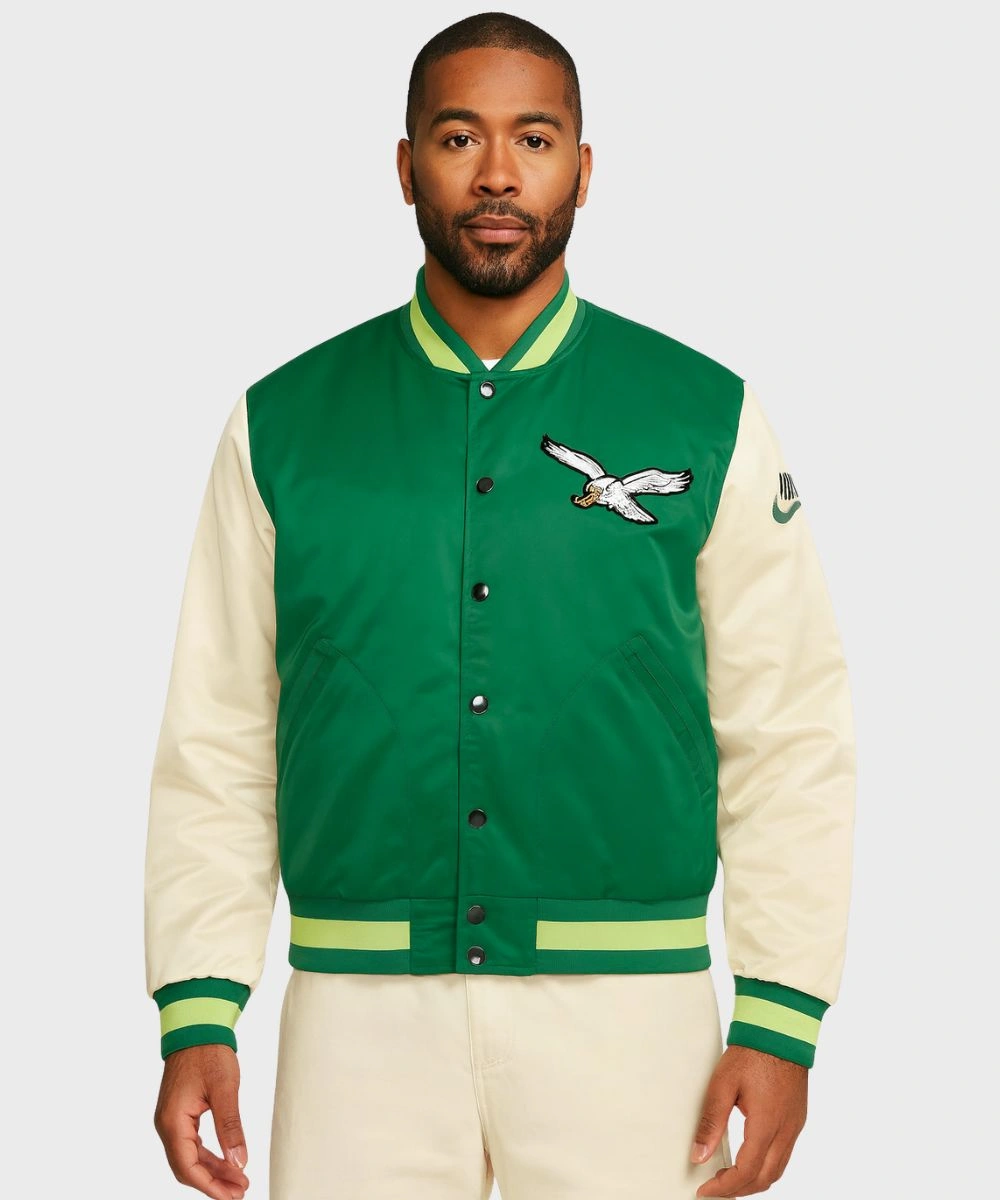 Shop Unisex Philadelphia Eagles Nike Rewind Legacy Full-Snap Bomber Jacket – Green And Cream