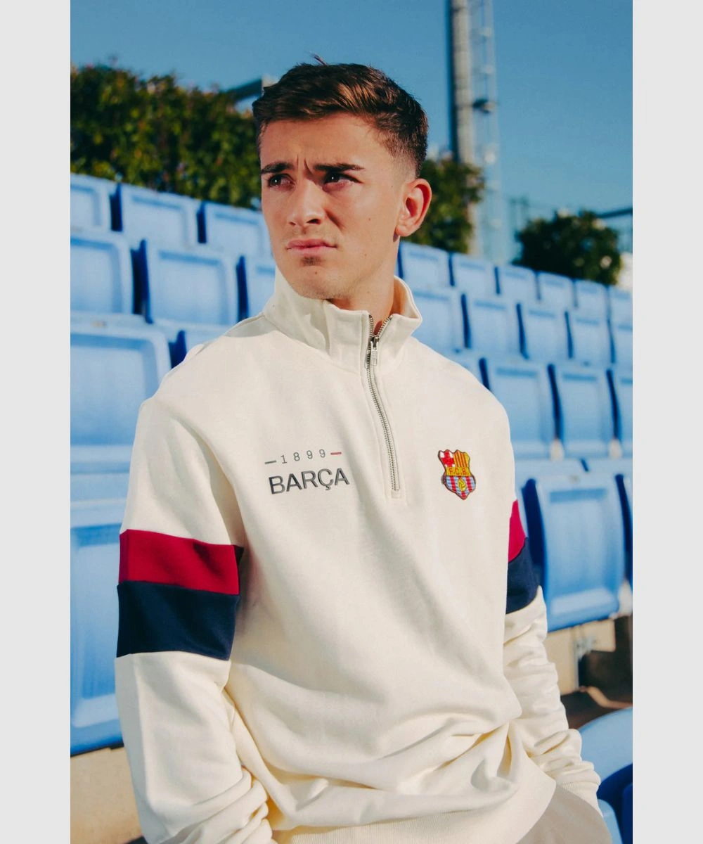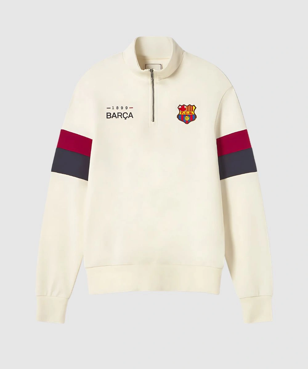 FC Barcelona Retro 1899 Half Zip White Sweatshirt – Unisex