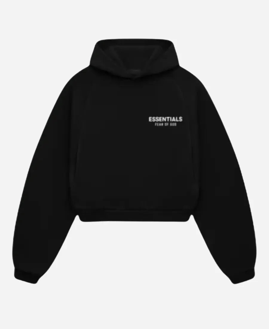 Shop Fear Of God Essentials Cropped Black Pullover Hoodie For Women – Recreation