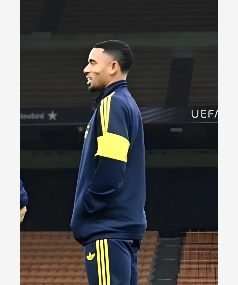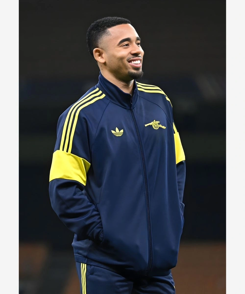 This Gabriel Jesus Track Jacket has a lightweight yet durable construction to ensure daily comfort without sacrificing style. It has an integrated zipper fastening for effortless layering that makes it a highly adaptable wardrobe piece for your rotation. The front features iconic Adidas alongside the historic Arsenal cannon crest graphics. It has two spacious waist pockets for keeping essentials, whether you are heading to a training session or navigating the city. The sleeves have signature three stripes running down to bold yellow colour-blocked panels. It gives it a distinctive and customized edge over standard sportswear.