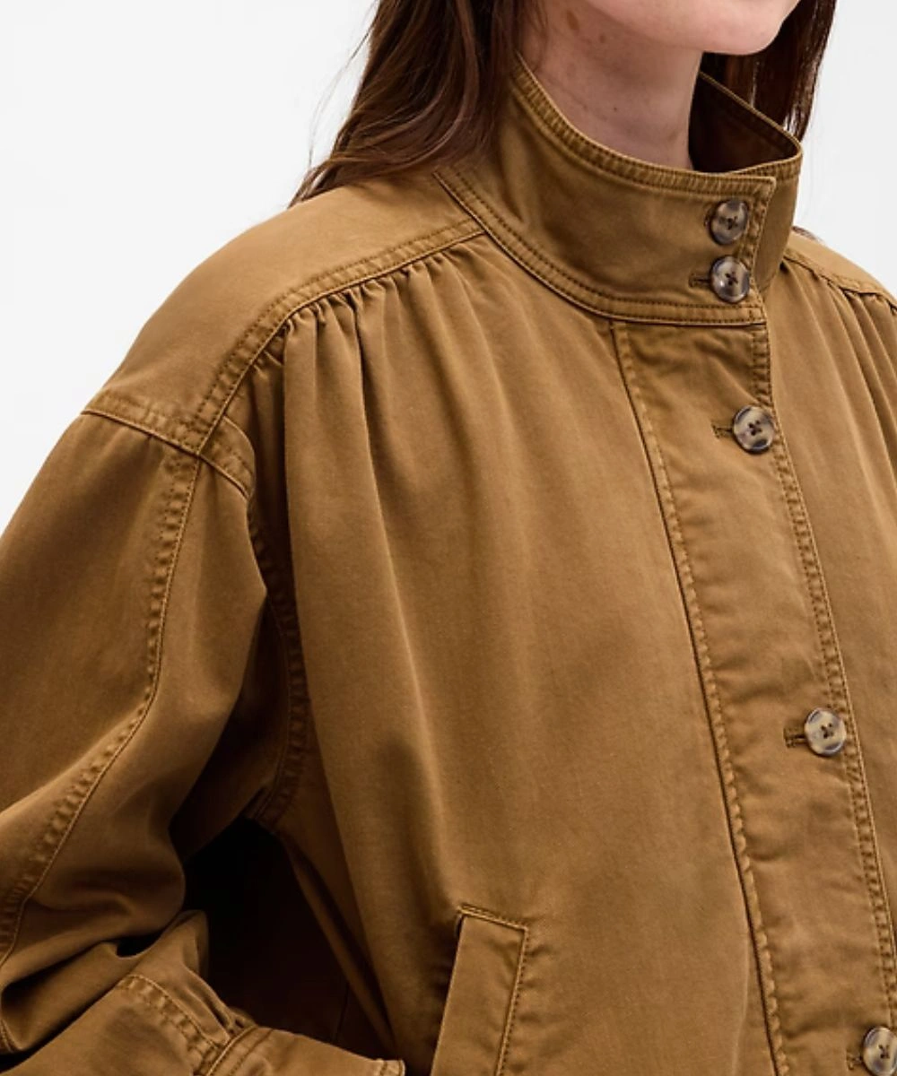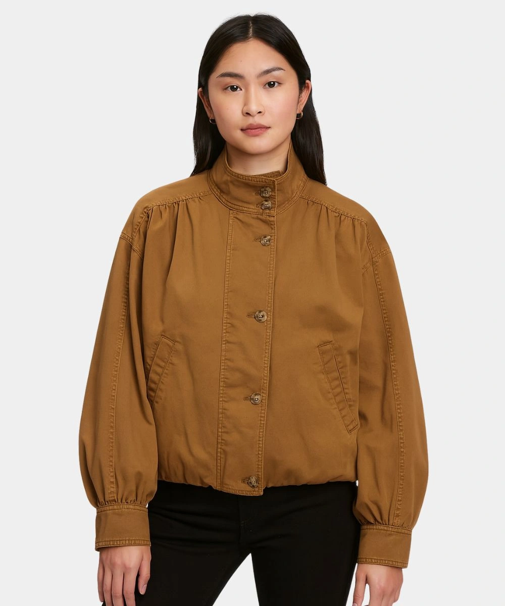 The shoulder has subtle pleats that give a relaxed shape and easy style. It has a cinched bubble hem and buttoned cuffs that provide a tailored finish with warmth locked in. The Women’s Gap Twill Bubble Cotton Jacket – Brown And Pink is a versatile wear from day to night. Its durability and craftsmanship are further enhanced by its precise embroidery. This garment is offered in two colours that contribute to the adaptability of your appearance. It has dual side pockets and adds utility to your style. It is a go to piece when you want to transform style and feel snug.