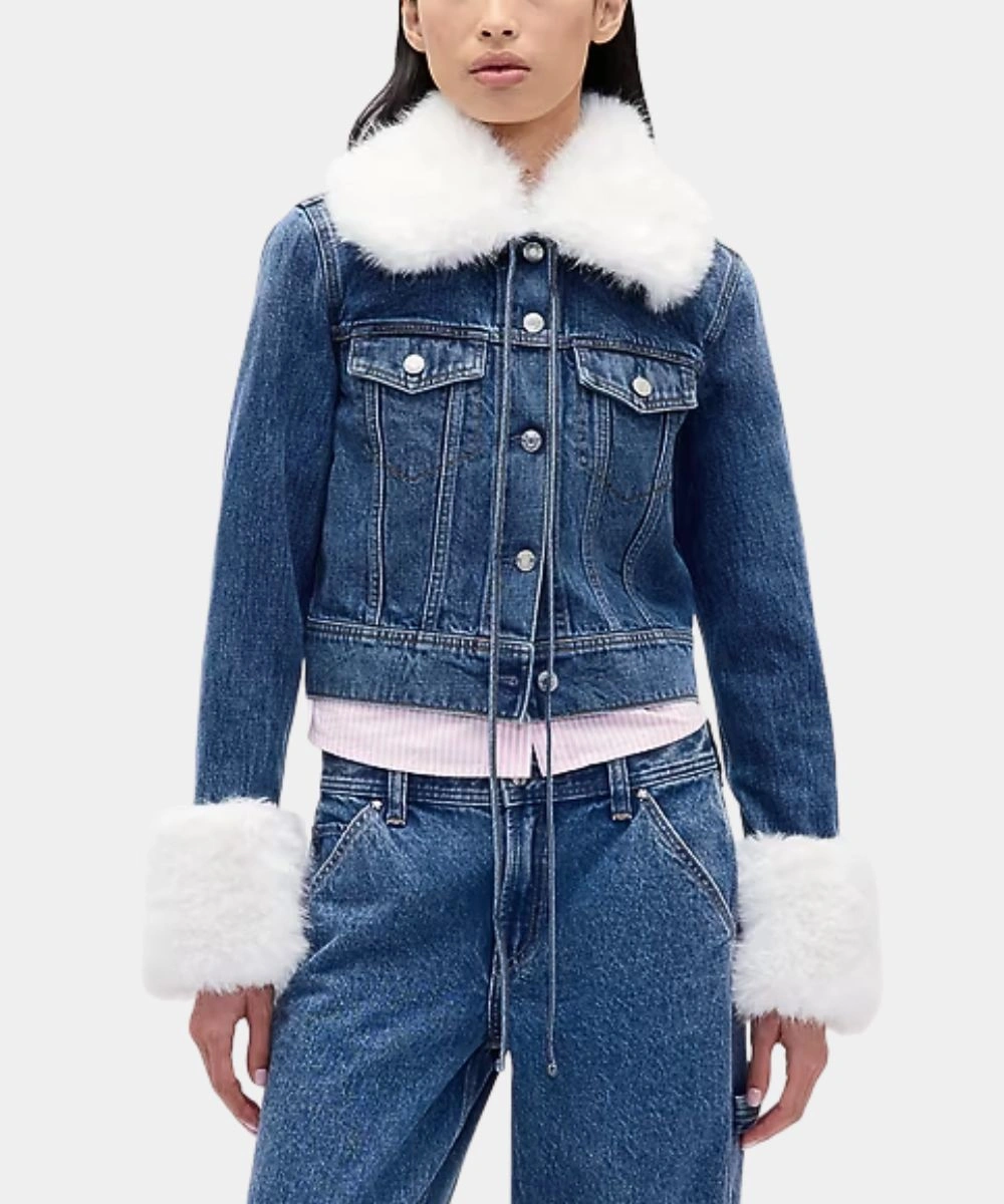 Shop Gap x Sandy Liang Vegan Fur Cropped Denim Jacket For Women’s
