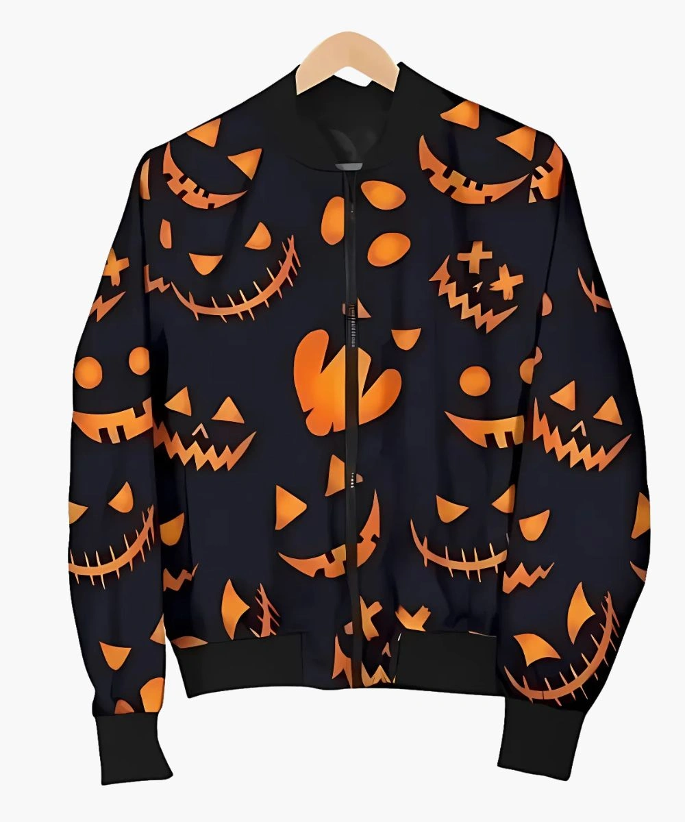 Halloween Festival Pattern Pumpkin Bomber Jacket