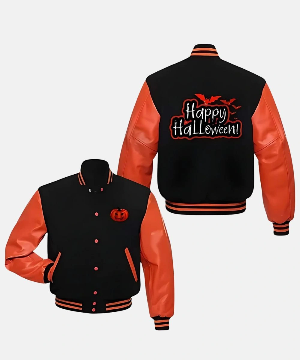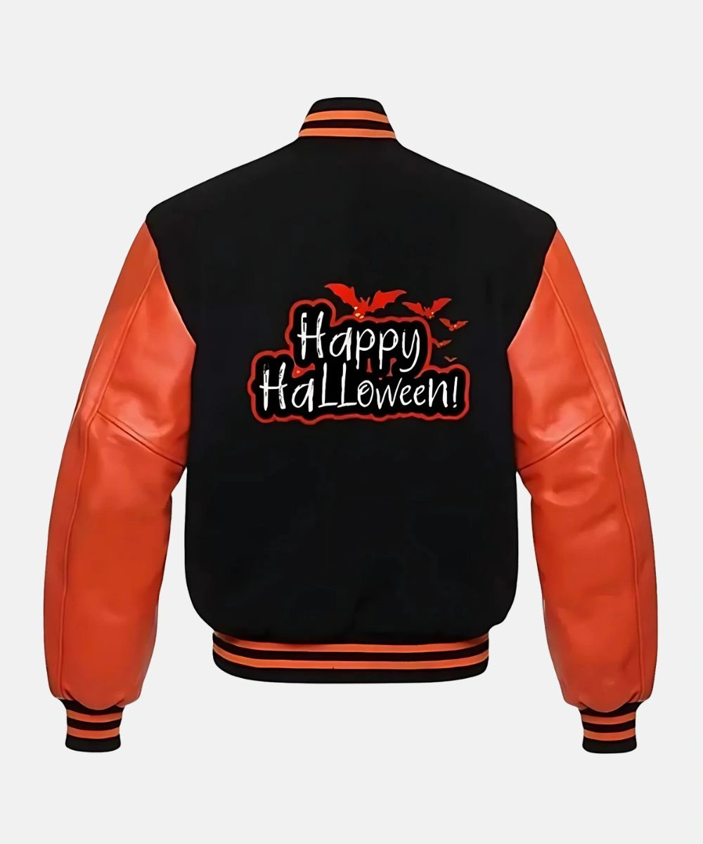 Happy Halloween Letterman Varsity Bomber Jacket – Black And Orange