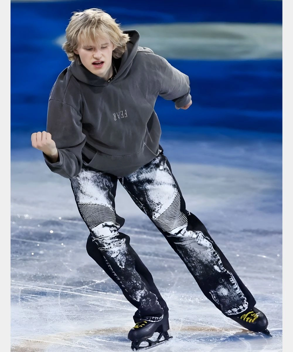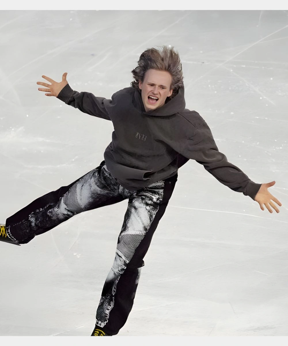 Experience a new fusion of athletic vigour and high fashion flair in the Ilia Malinin Fear Hoodie. Made with premium cotton material that provides a soft and breathable texture. The design is centred on a muted grey cotton base that allows the bold “FEAR” typography and high definition prints that reflect the precision and artistry of the ice.