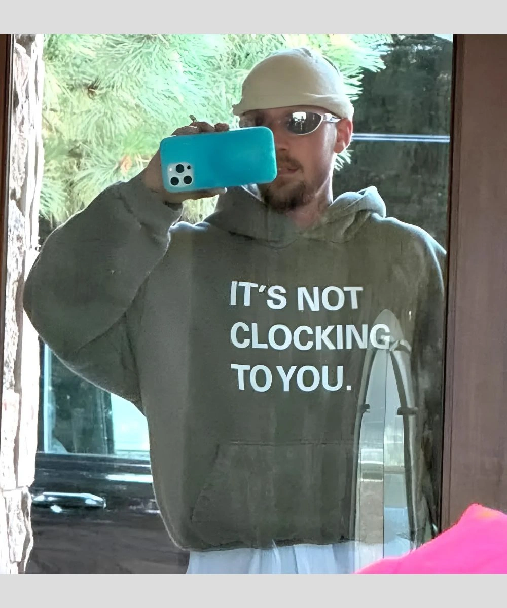 Channel a bold look and iconic energy with the new It’s Not Clocking To You Justin Bieber Green Hoodie. Constructed from soft fleece, its relaxed silhouette blends both warmth and lasting wear. The minimalist phrase “It’s not clocking you” adds visual interest with confidence.
