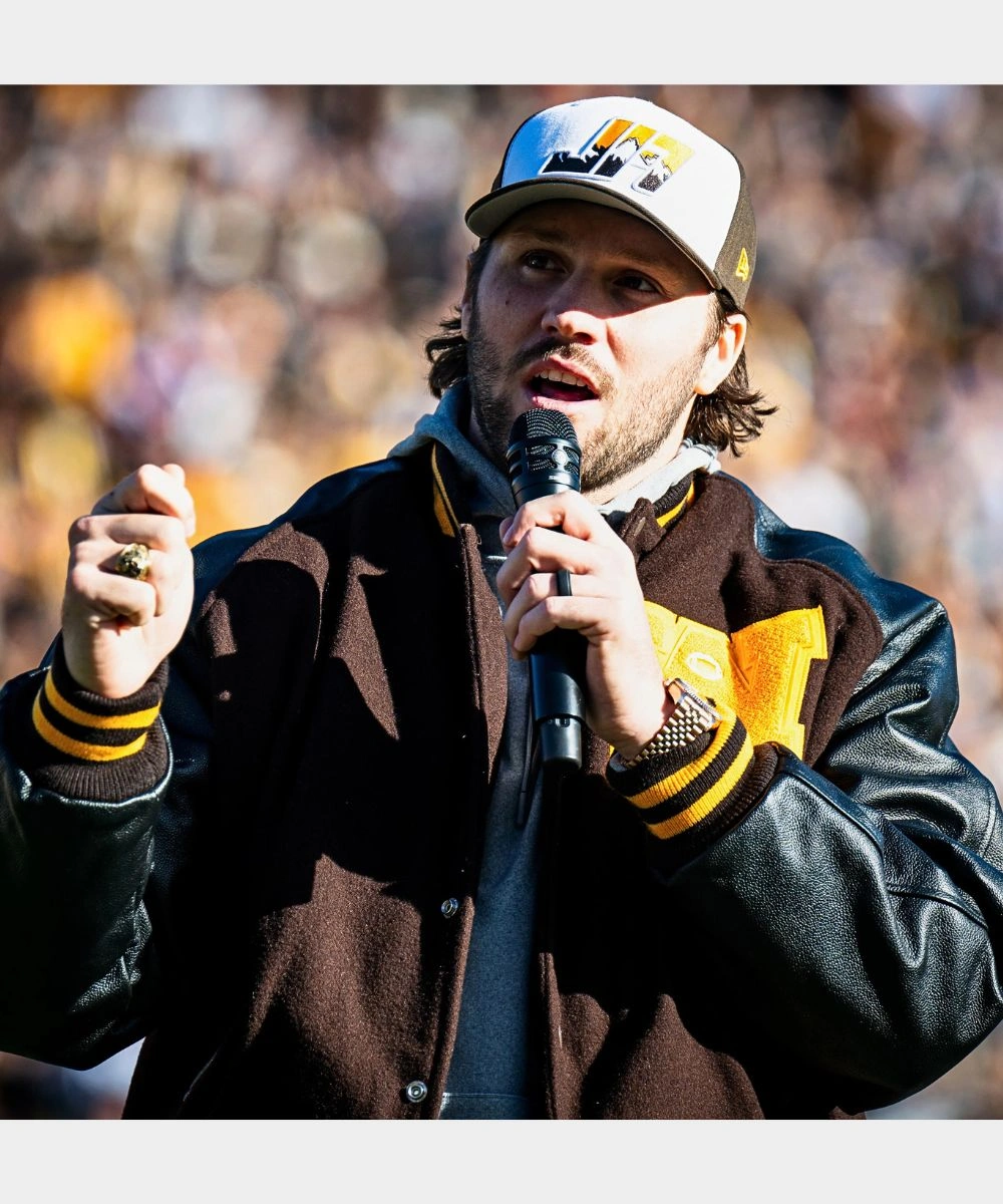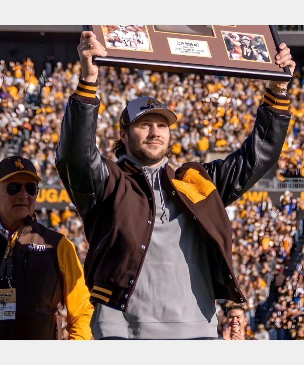 This varsity jacket brings sports legacy and everyday style together in one strong piece. It showcases a bold “W” patch at the front that represents Wyoming Football. Ribbed cuffs and hem maintain their original shape even after repeated use. The Josh Allen Wyoming Football Retirement Ceremony Varsity Jacket is insulated and provides comfort, allowing for adaptation to various weather conditions or individual styles. The tailored design and high-quality craftsmanship simplify layering and are suitable for formal occasions or relaxed weekend attire. It features two welt pockets for an elegant appearance and enhanced functionality.