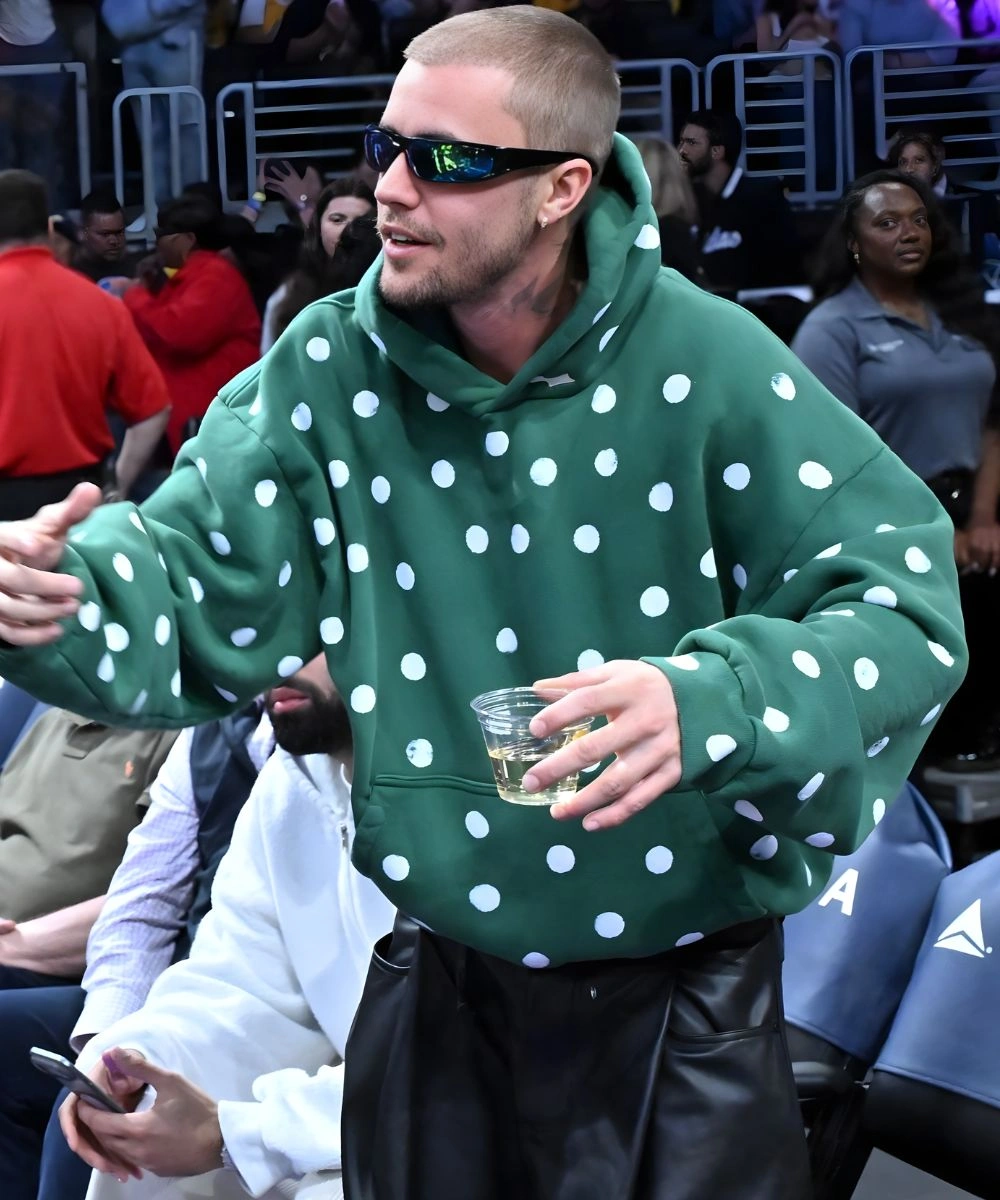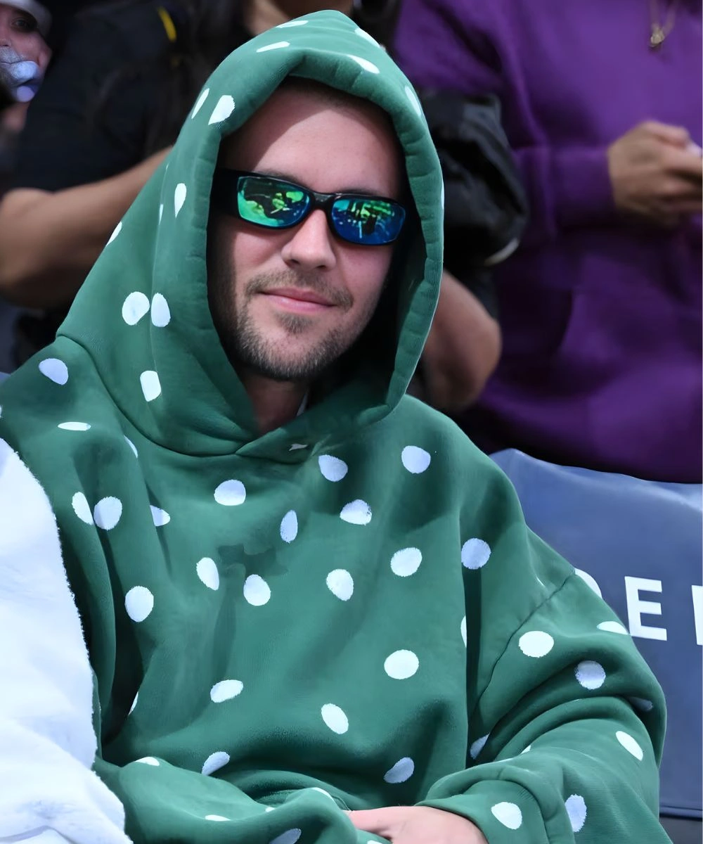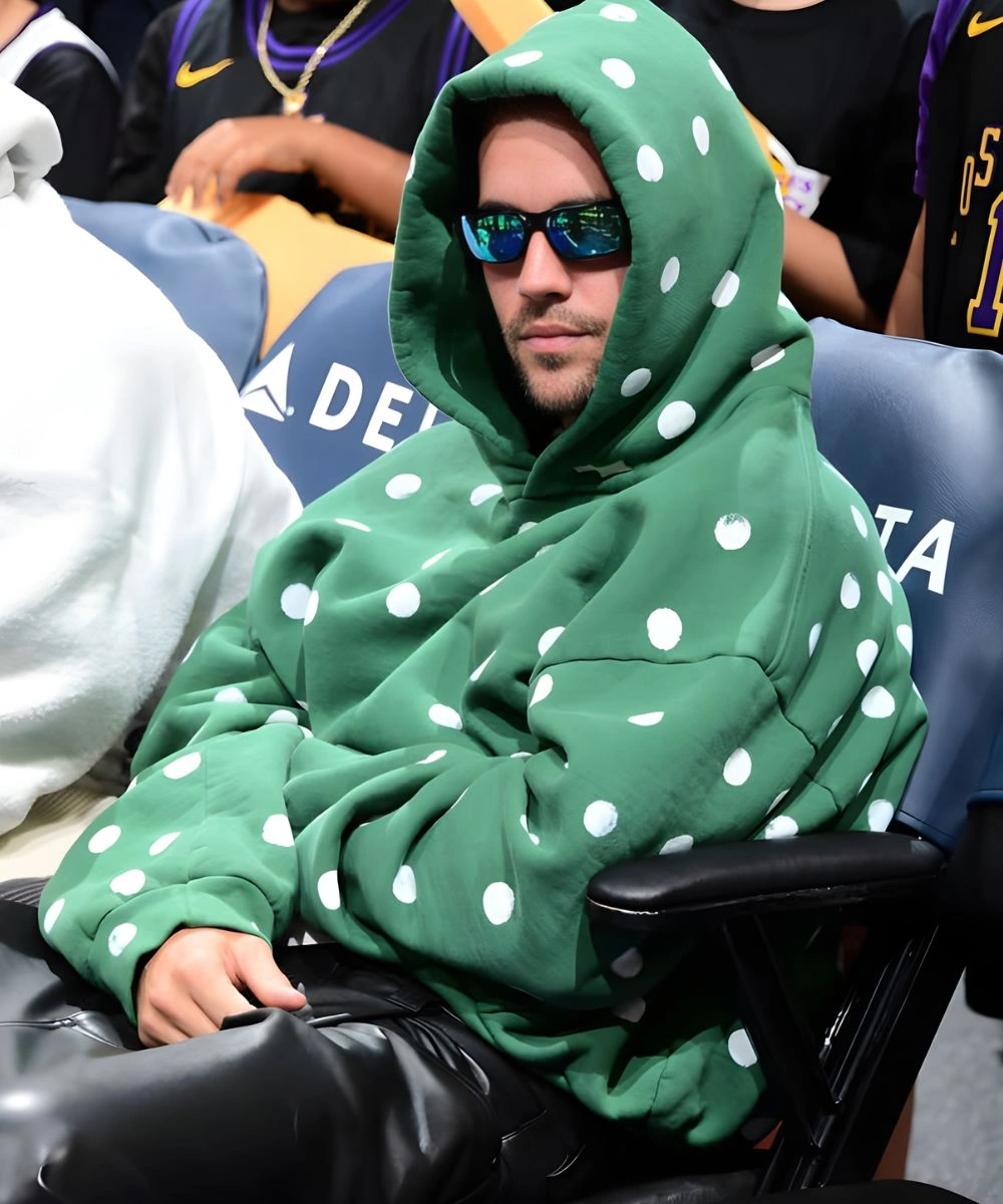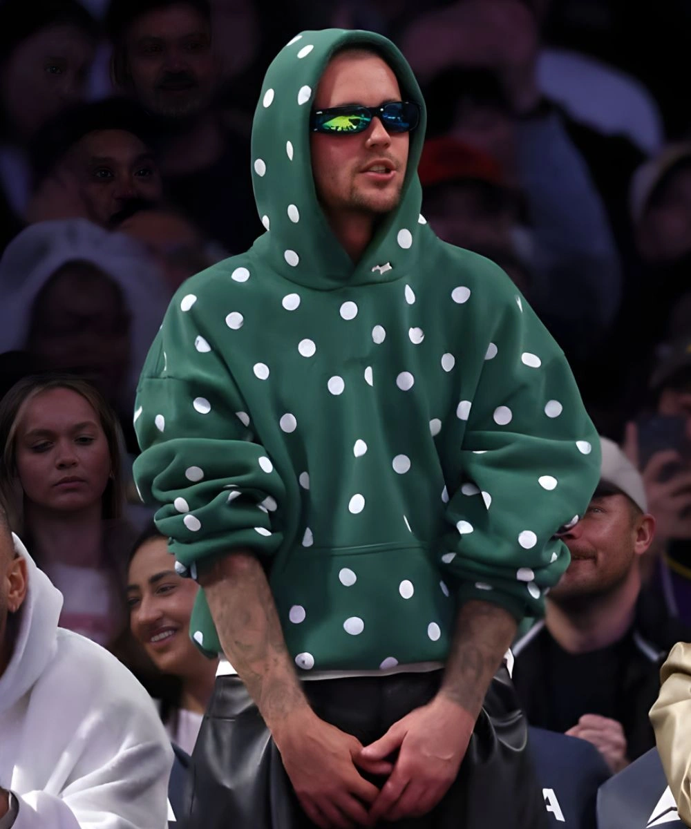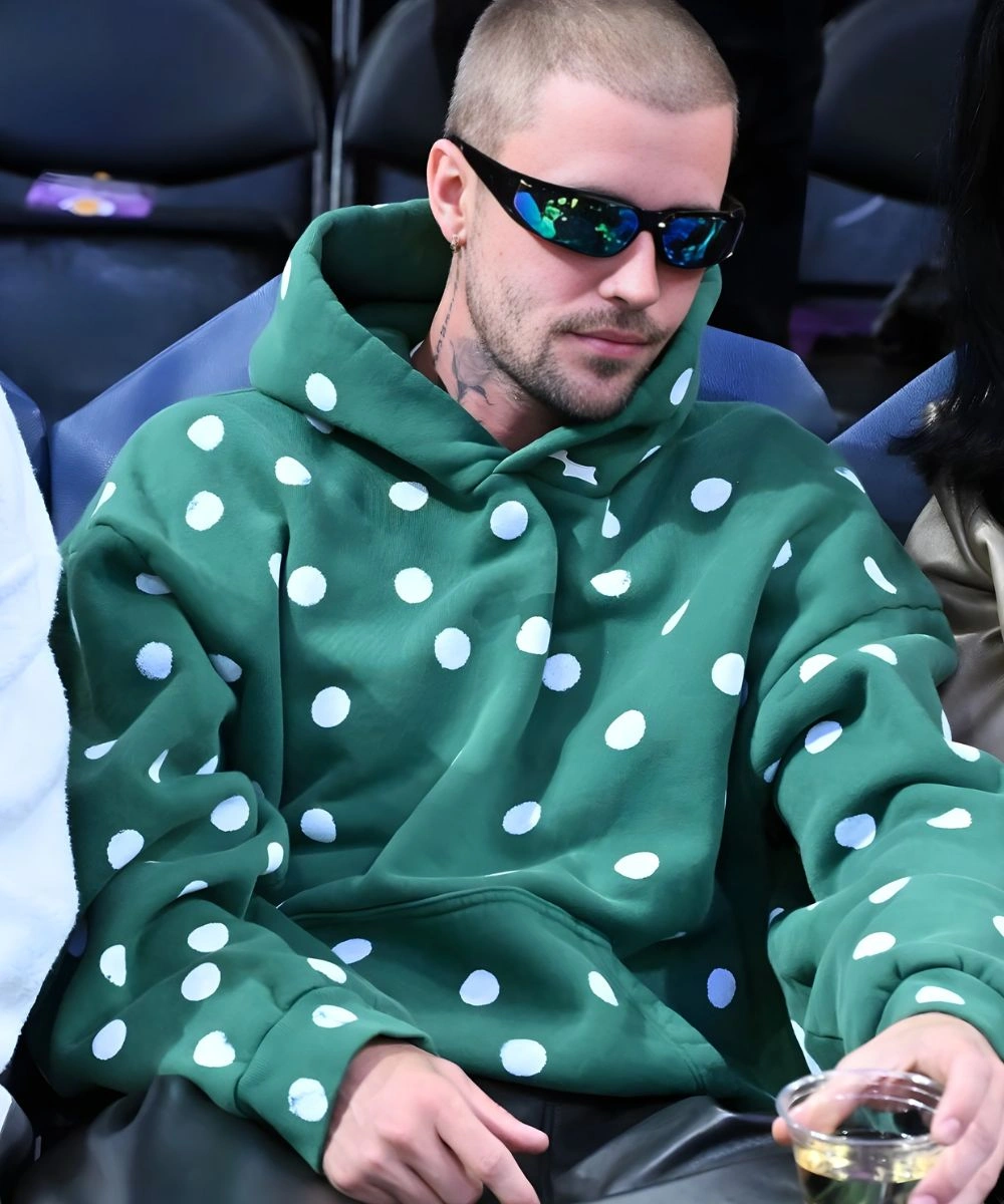 Turn everyday comfort into a statement look with the Justin Bieber Polka Dot Green Hoodie. Inspired by his fearless street style and trendsetting edge for every fan. This Justin Bieber Polka Dot Green Hoodie is a vibrant blend of street-ready vibe and whimsical pop design. It is made from high-quality fleece that offers an insulating layer and retains a soft loft to endure everyday wear. It has a structured look and remains exceptionally soft to the touch.