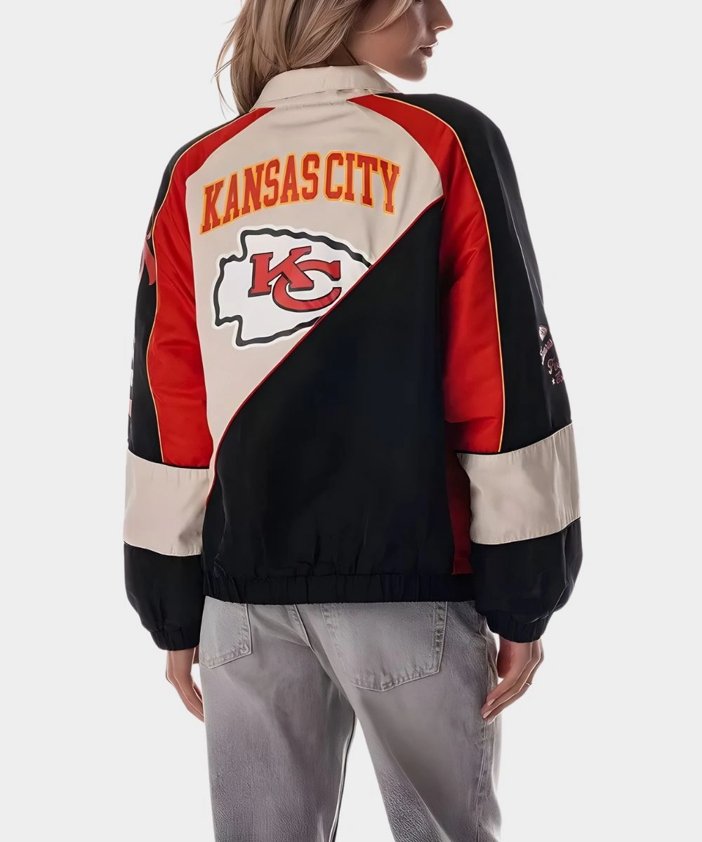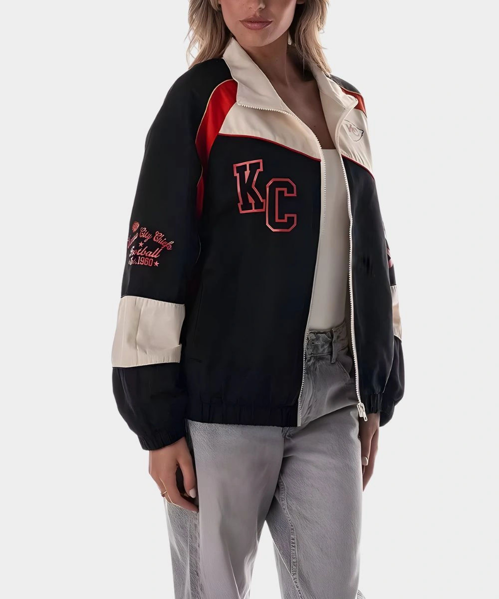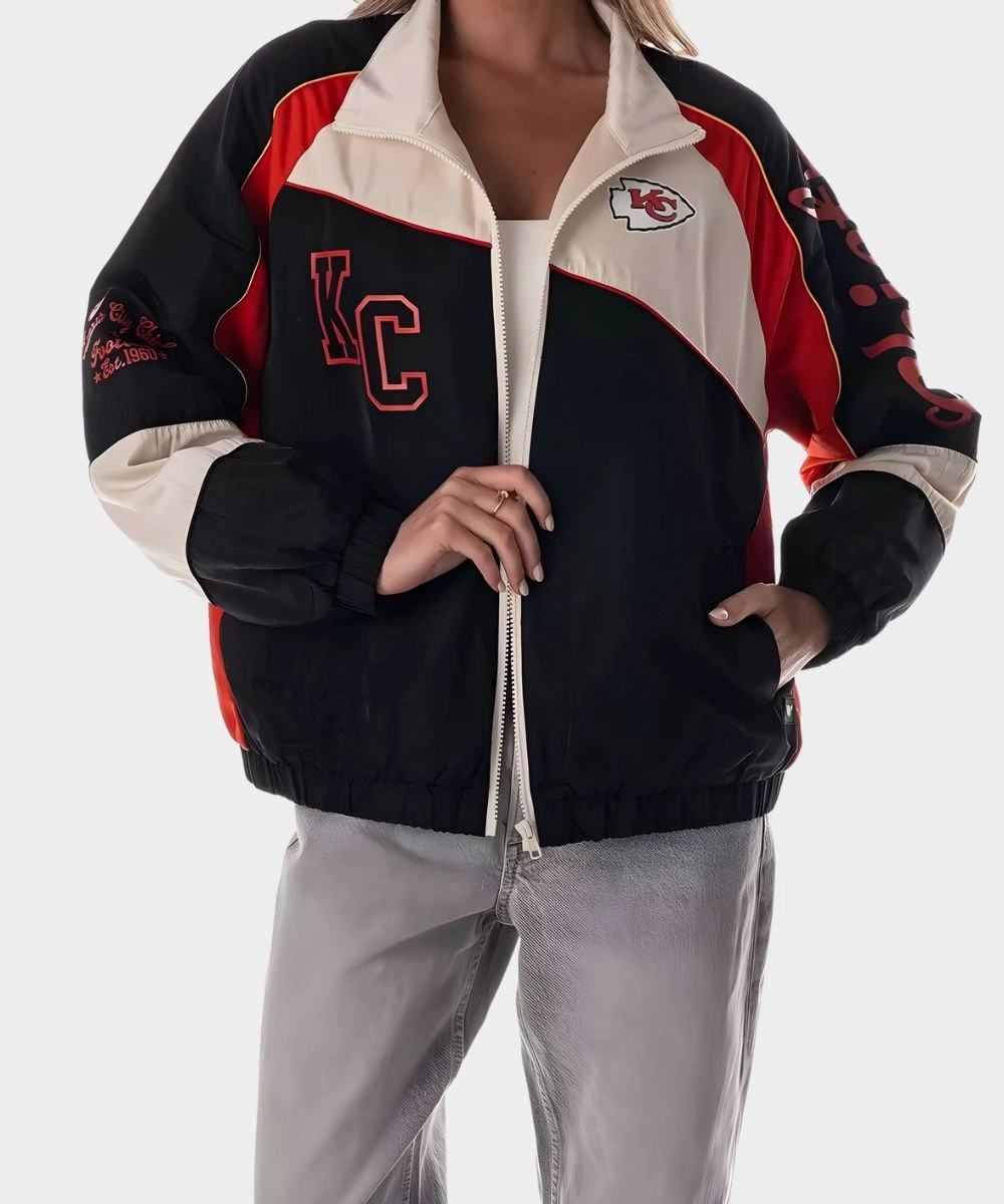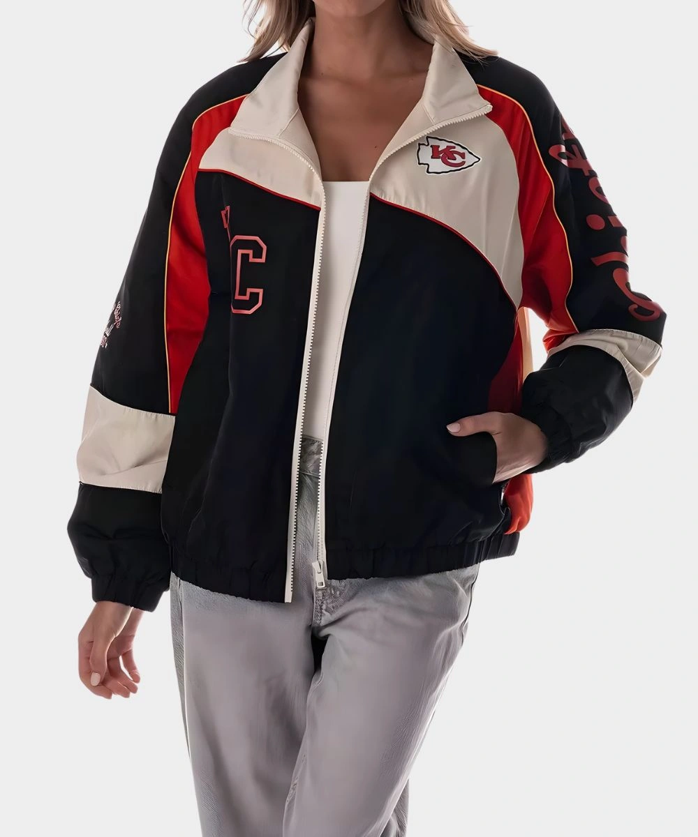 Shop Caitlin Clark Kansas City Chiefs Colorblock Track Jacket For Women’s to showcase your sporty elegance with contemporary style. It features a front full-length zip closure to give you a fast and easy wear. The cut is relaxed and makes layering effortlessly comfortable without feeling tight or bulky. It has colour block detailing with Kansas City Chiefs branding at the front, back and on the sleeves. The Caitlin Clark Kansas City Chiefs Colorblock Track Jacket For Women’s offers a bold energy to every outfit. You can easily style it for casual to streetwear and many other different ensembles beyond your game day wardrobe. Finished with elastic cuffs and hemline for snugness, this jacket also has two side pockets for essentials.Â