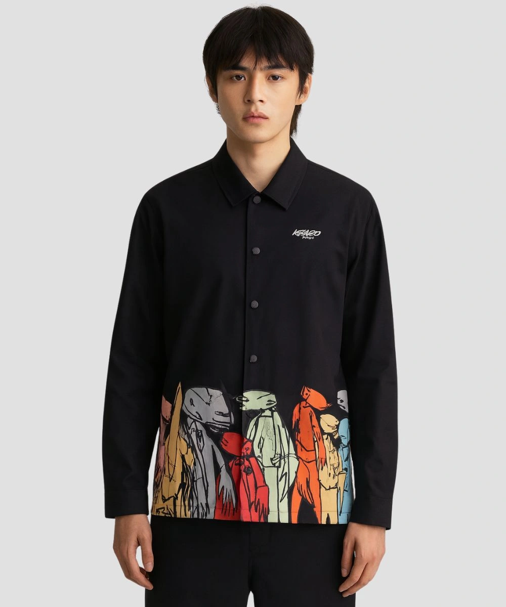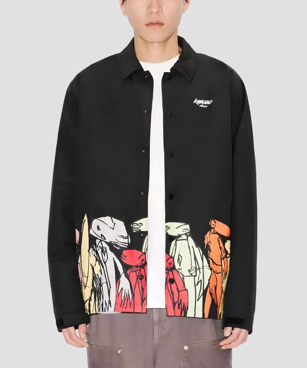 The Kenzo x Futura 2000 Padded Coach Jacket brings together street art energy and refined craftsmanship to redefine your style. It is constructed of cotton and has a simple design that adds structure and urban edge. The soft fabric and breathable liner give you a comfortable feeling and add warmth without bulk. Tailored with a shirt collar for a sturdy appearance. Front buttoned closure completes the design and adds a sophisticated touch to the overall design. The Kenzo x Futura 2000 Padded Black Coach Cotton Jacket For Men & Women has precision and durable craftsmanship for long lasting wear. It gives effortless style and makes it easy to layer without feeling heavy.Â