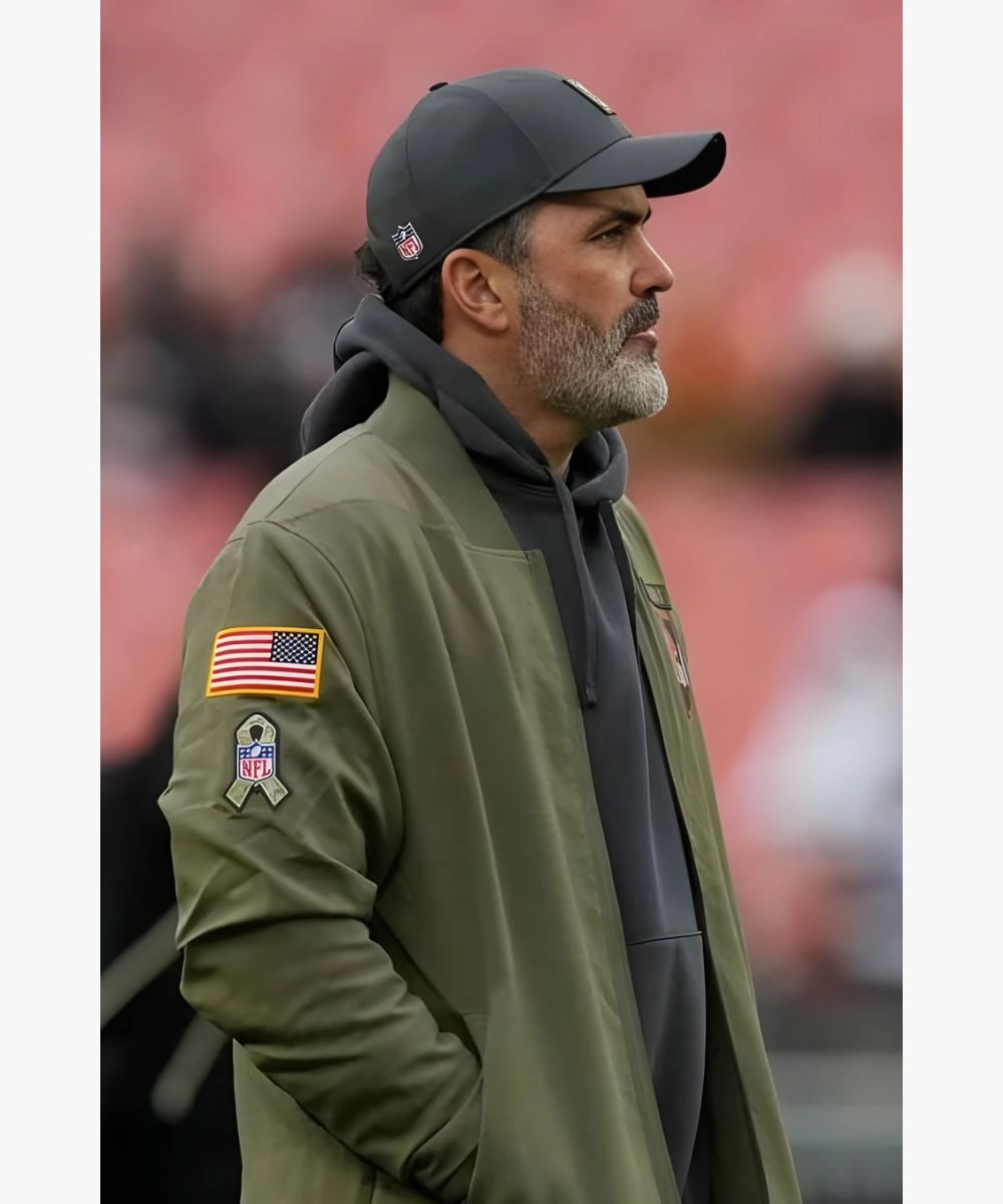 American Football Coach Kevin Stefanski Cleveland Browns 2025 Salute to Service Bomber Jacket – Olive Green