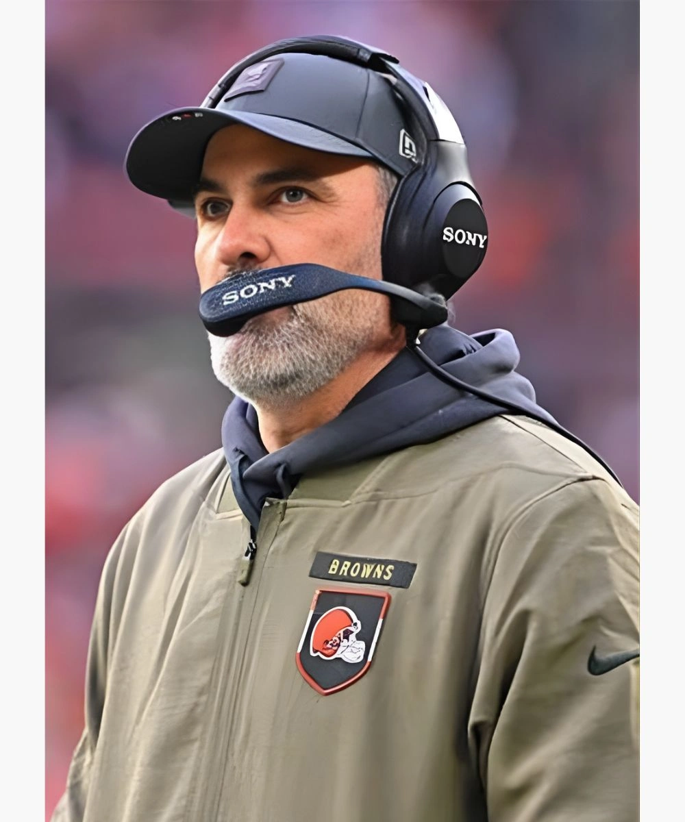 Finished with a full zip fastening that ensures a smooth and secure fit. It also has a Salute to Service ribbon and a U.S flag patch on the sleeves for honour and grit. The Kevin Stefanski Cleveland Browns Salute to Service Jacket features a ribbed hem that adds structure to the overall fit. The dual pockets are roomy and suitable for keeping essentials. Beyond its thoughtful details, it is built for leaders. You can wear it both on and off the field and carry both your Browns pride and your respect for service with style.