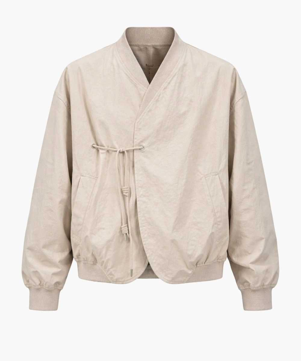Embrace the fusion of heritage and street culture with an ultimate blend of ultra-modern design in this Grey Kimono Bomber Cotton Jacket. It is expertly crafted with reinforced stitching across all seams, which makes it a standalone, durable statement. The design is crafted from heavyweight cotton for a breathable and comfortable experience. It has a rope closure design that breaks the standard hardware feature. It gives a distinctive look that secures the wrap front style and maintains an eastern aesthetic.
