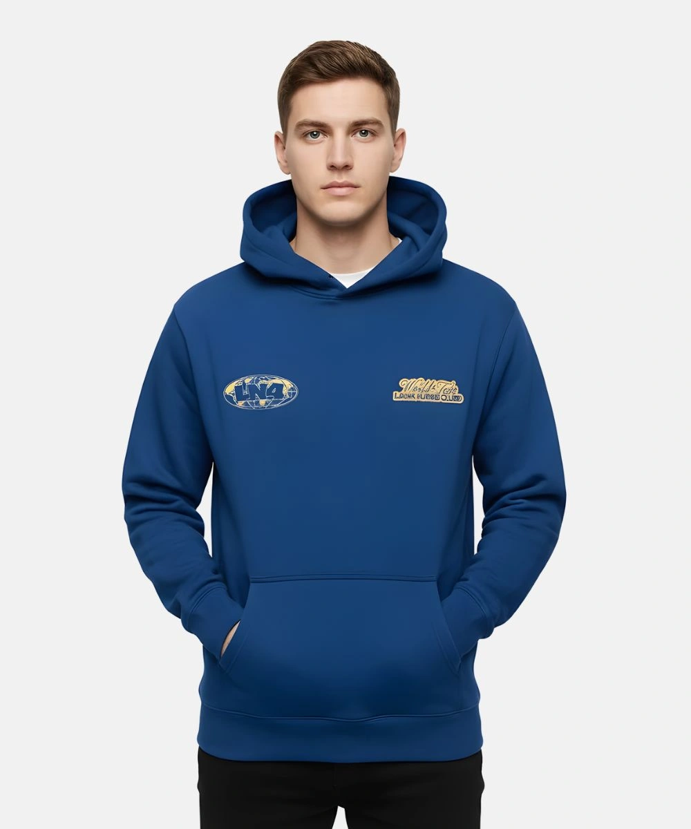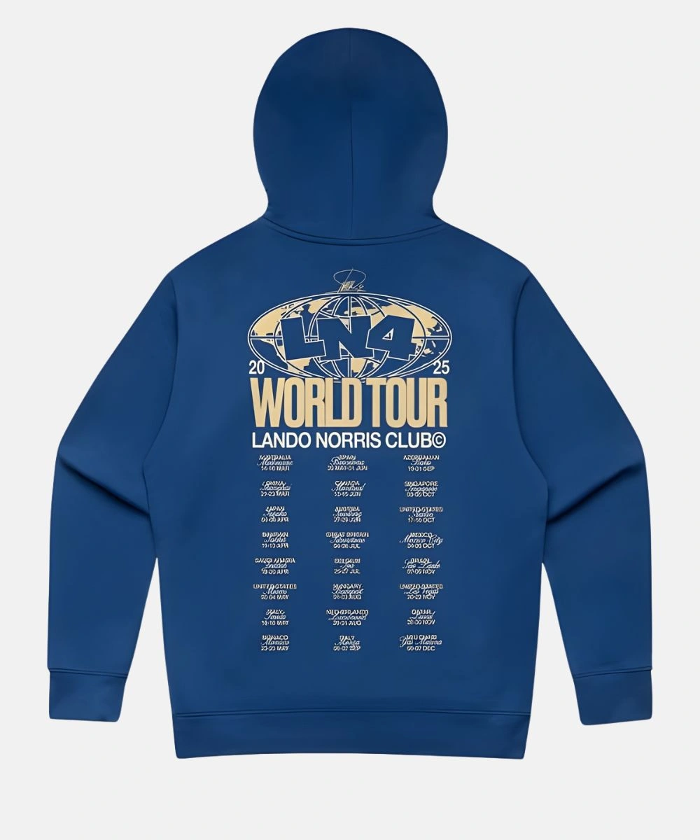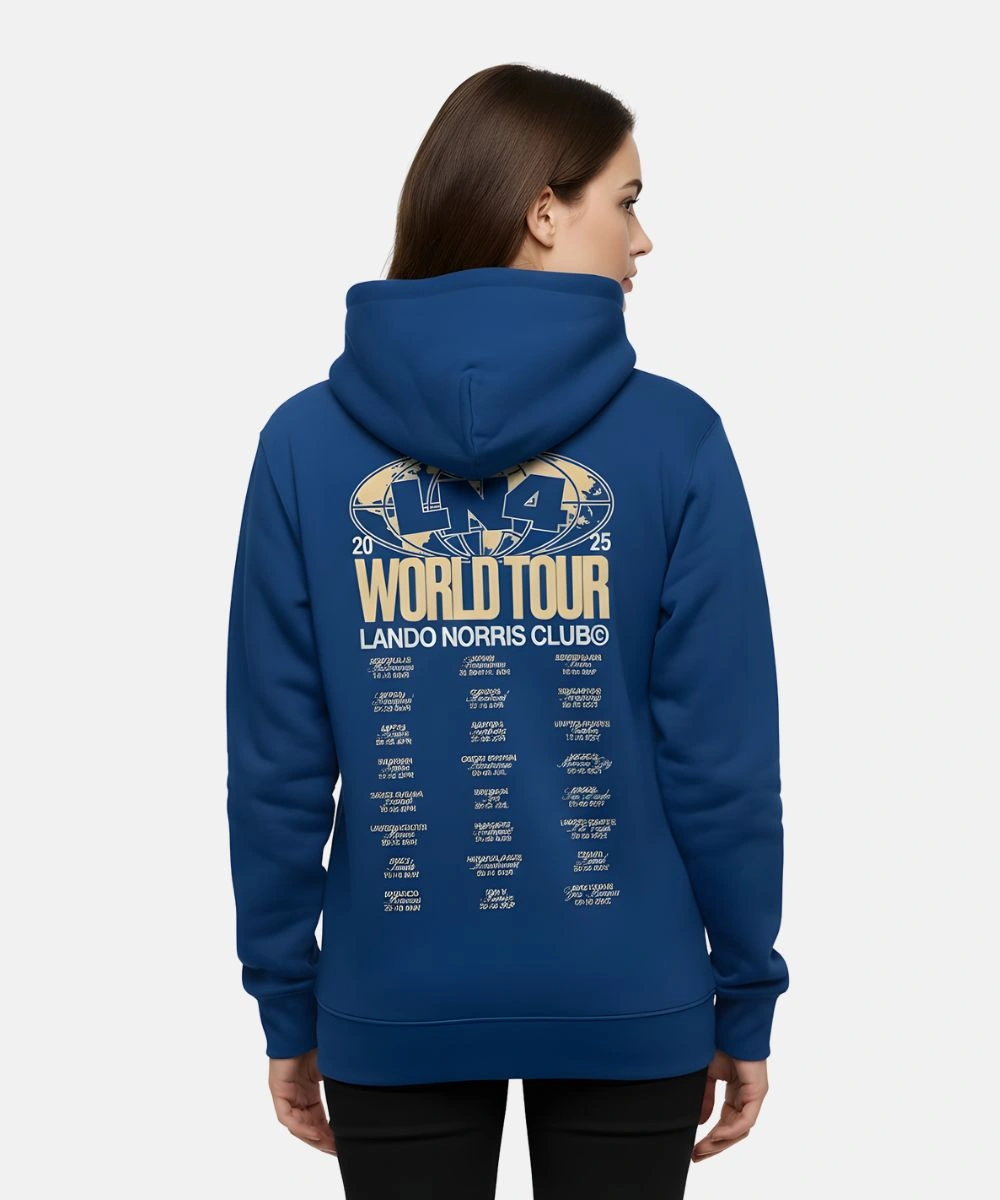 Unisex Lando Norris World Tour Pullover Fleece Hoodie – Dark Blue / Light Blue