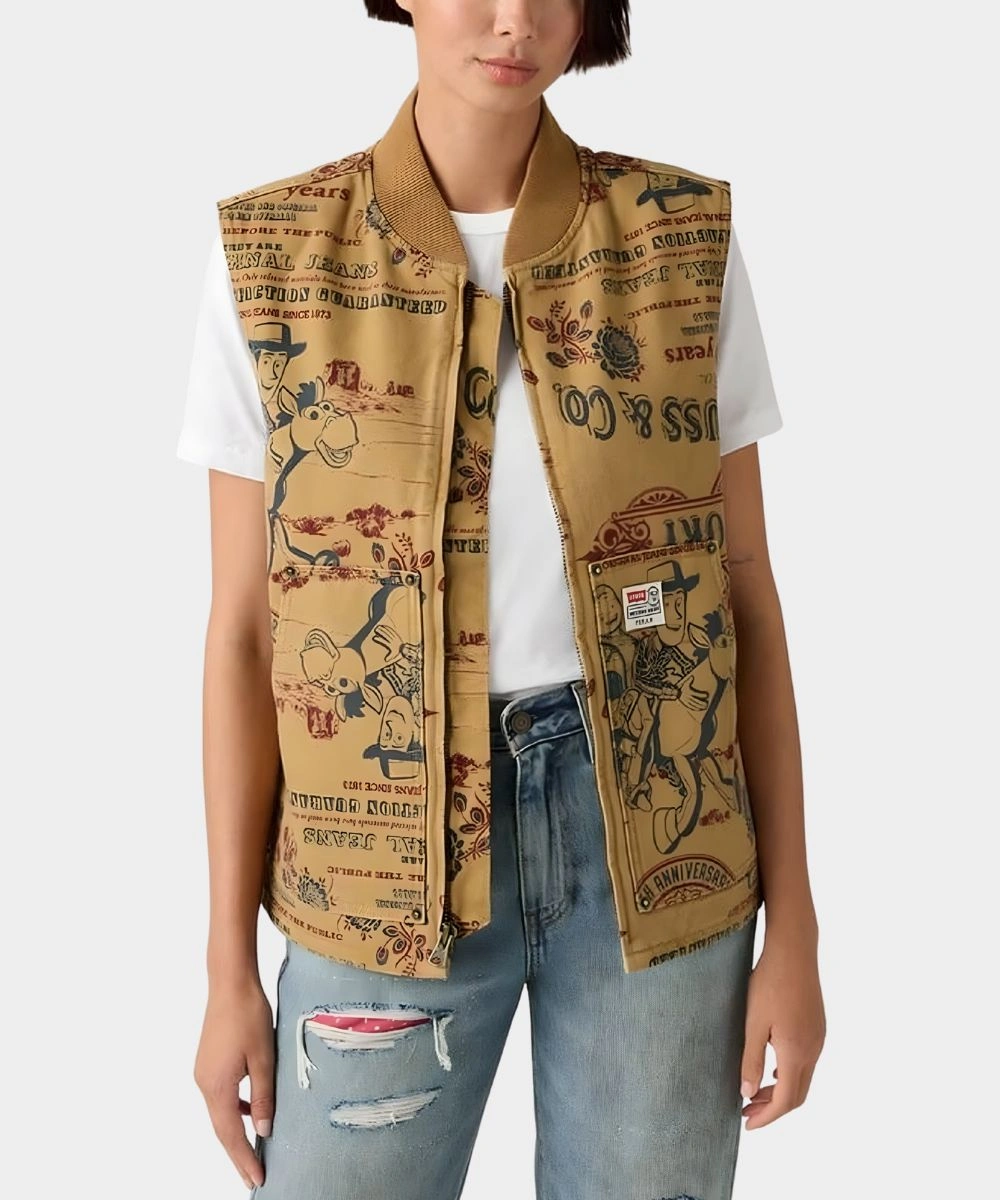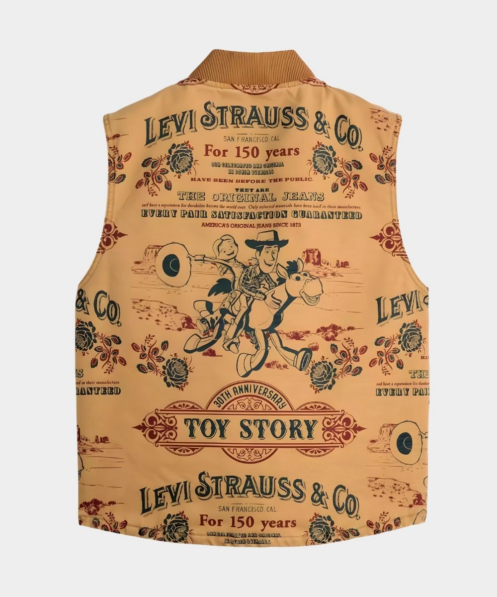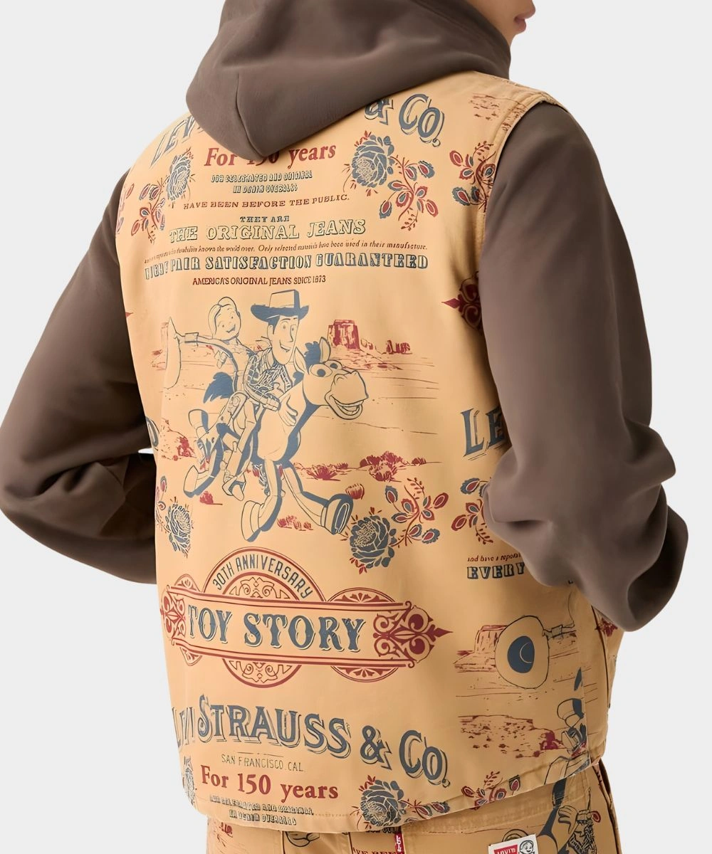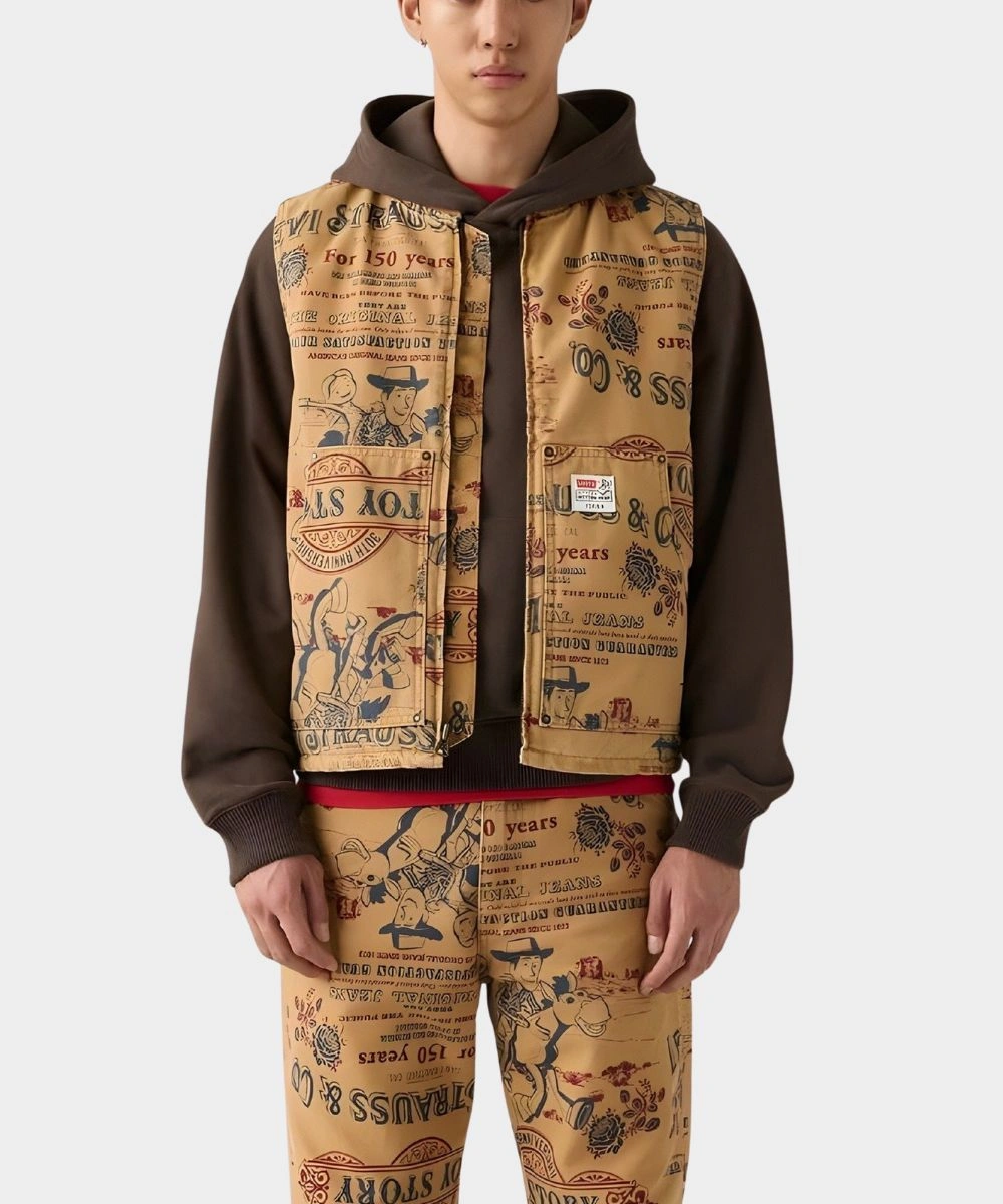 Bring the Toy Story magic to your style with this Levi’s x Toy Story Vest. This classic design is made for dreamers and adventurers who keep the story alive. It has a premium cotton fabric with thoughtful contrast stitching and playful Toy Story artwork. It’s soft against your skin and keeps you warm all day. The exquisite brown colors add to the versatility of your wardrobe and allow you to match with different clothes. The 2025 Levi’s x Toy Story 30th Anniversary Brown Cotton Vest – Unisex is designed with a front zipper for ruggedness and structure. It glides easily and makes you feel calm. The ribbed collar makes it look more durable and keeps your neck warm.