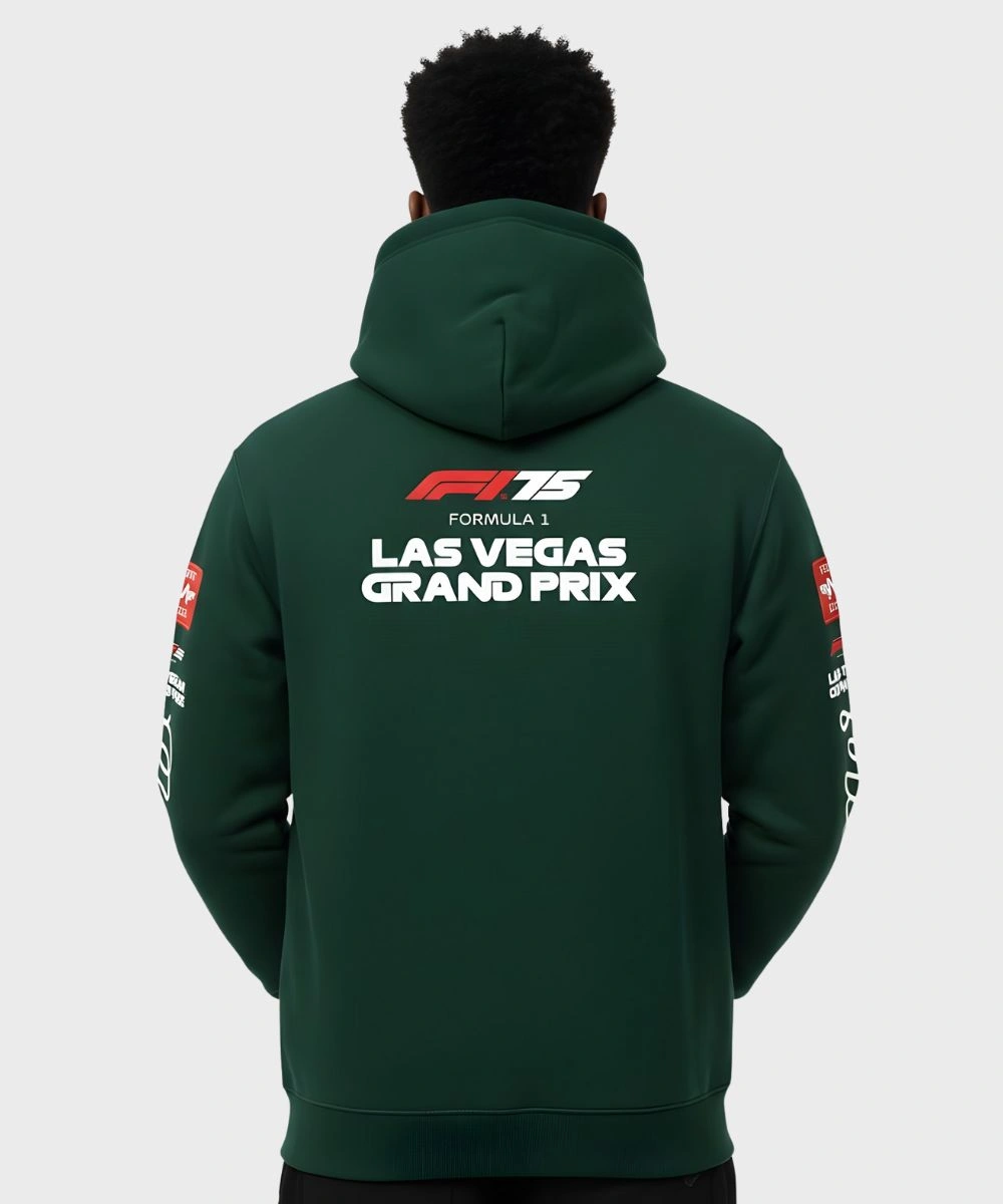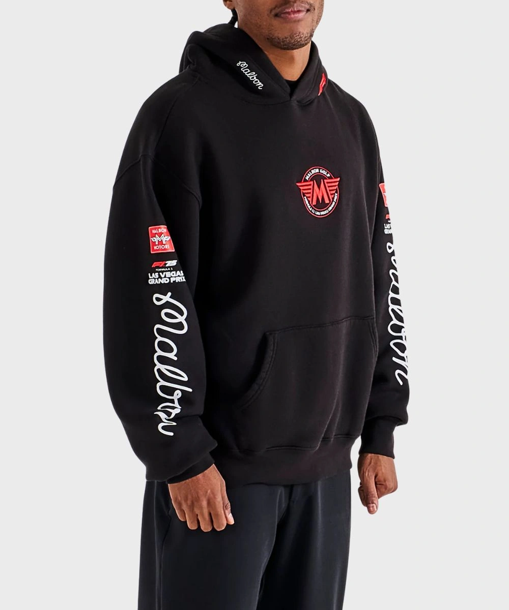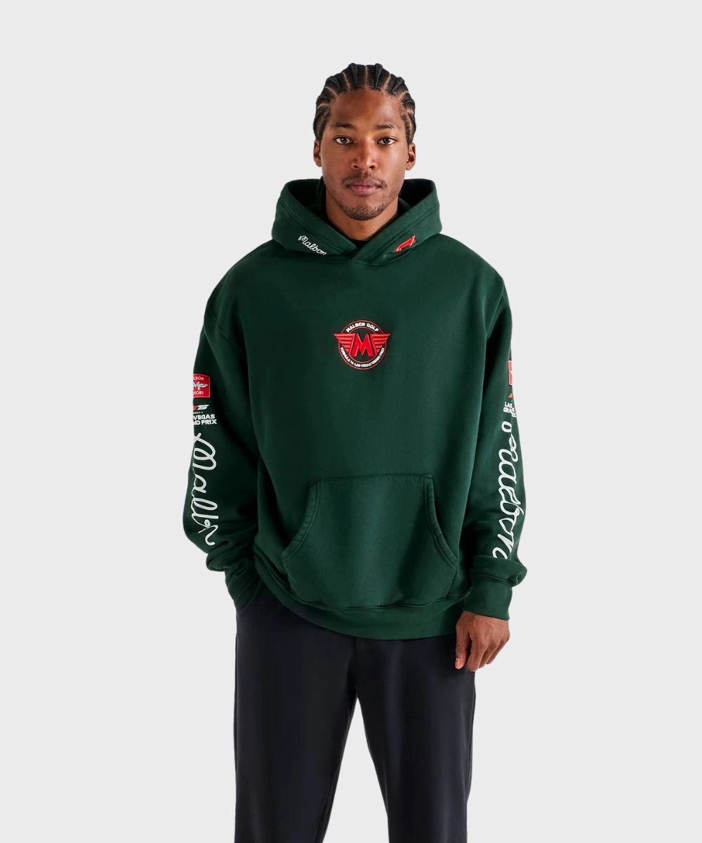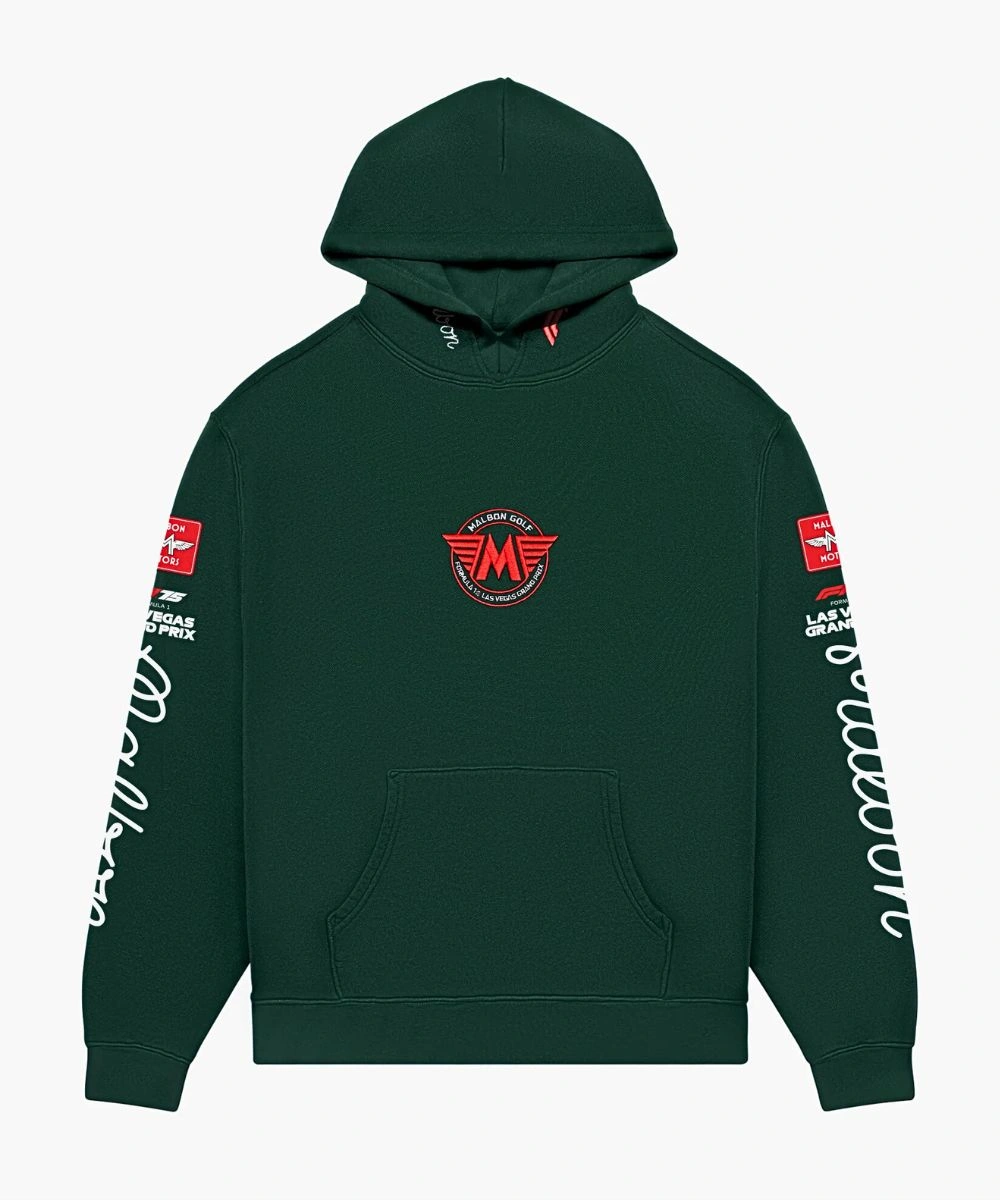 Shop Malbon Golf x F1 Las Vegas Grand Prix Fesque Delta Pullover Fleece Hoodie – Black & Green