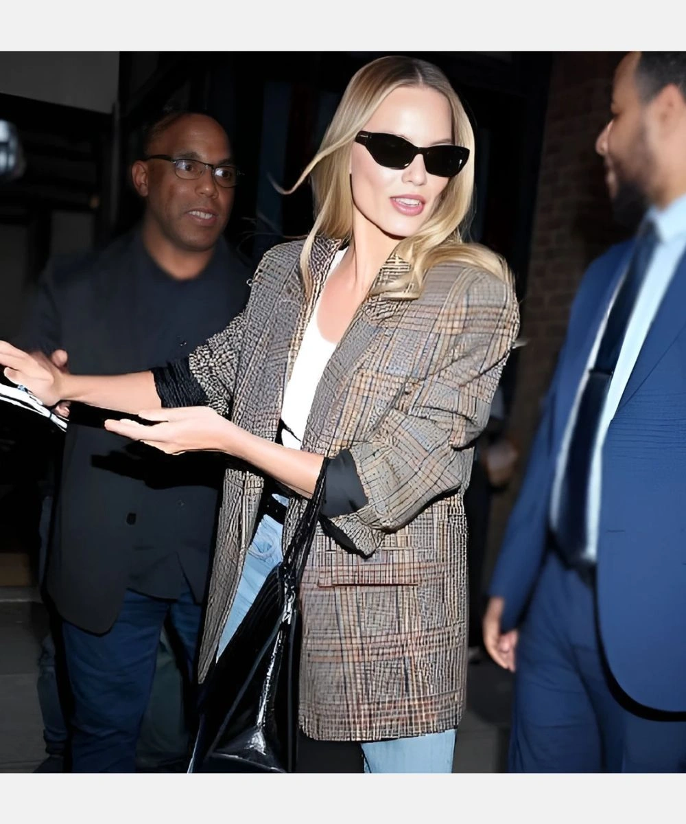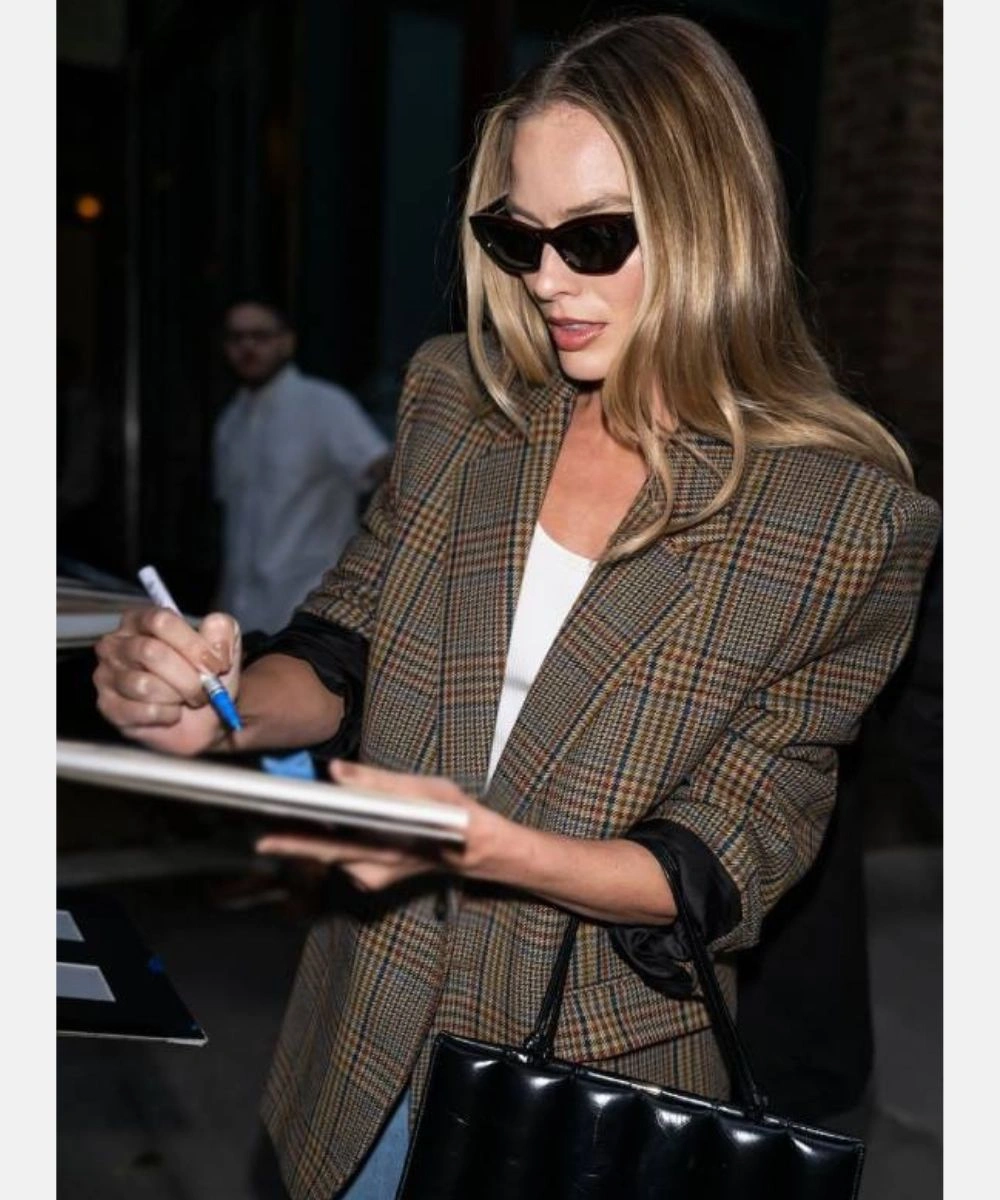 Shop NYC Tribeca 2025 Margot Robbie Plaid Blazer
