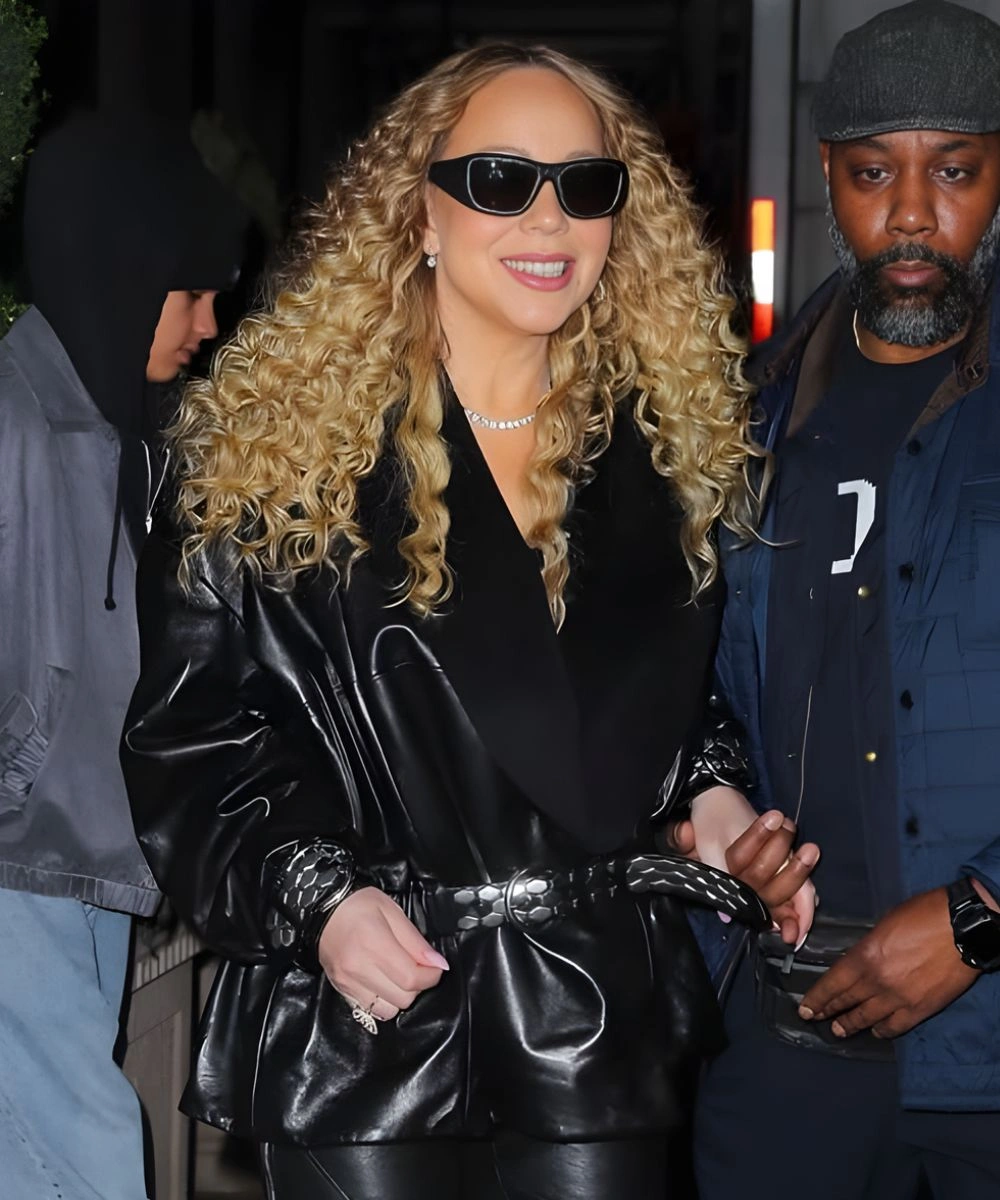 American Singer Mariah Carey 2026 Phoebe Philo Black Stud Leather Jacket