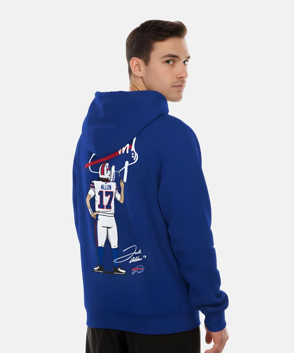 Men’s Buffalo Bills New Era Billustration Josh Allen Pullover Hooded Fleece Sweatshirt – Blue
