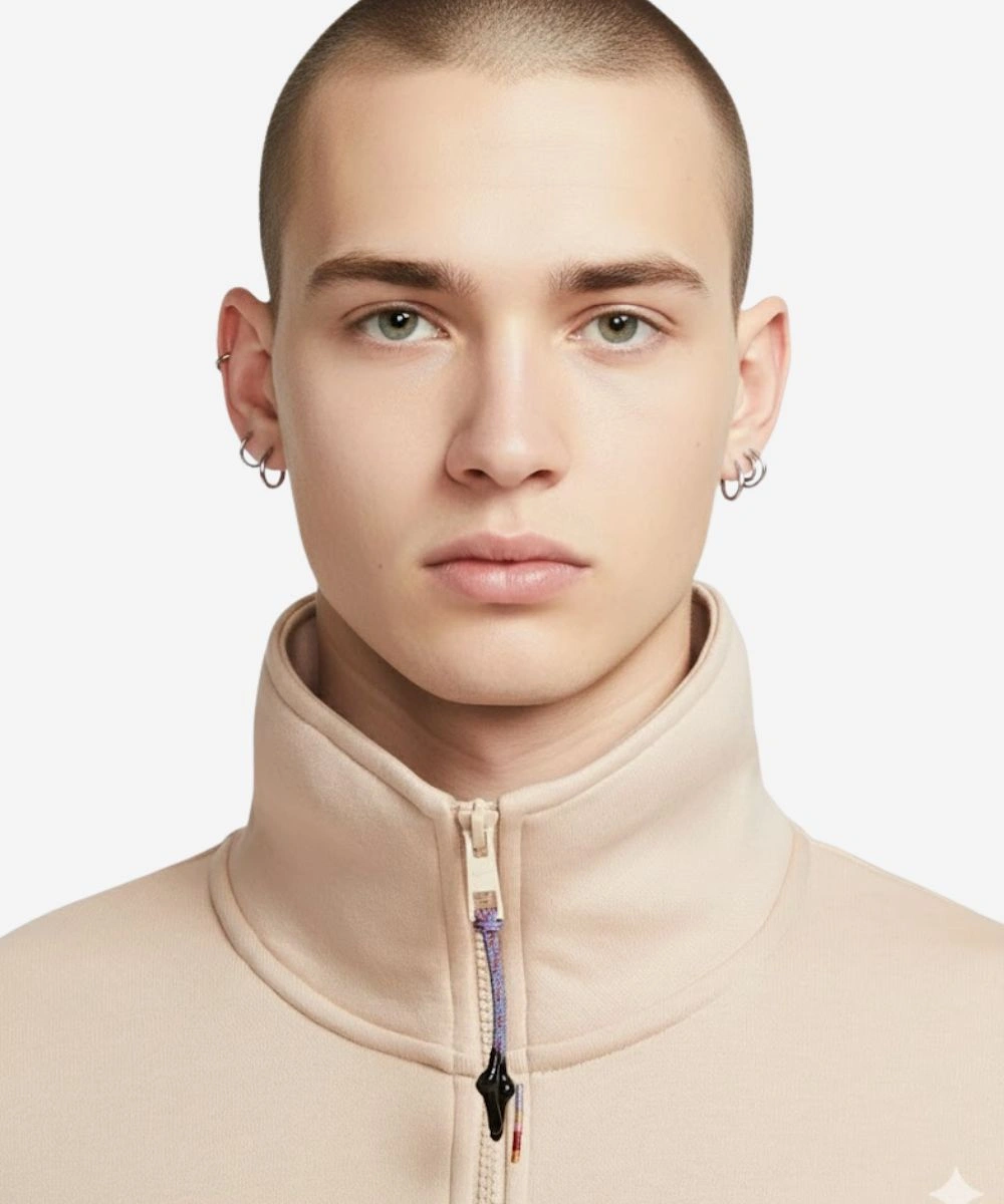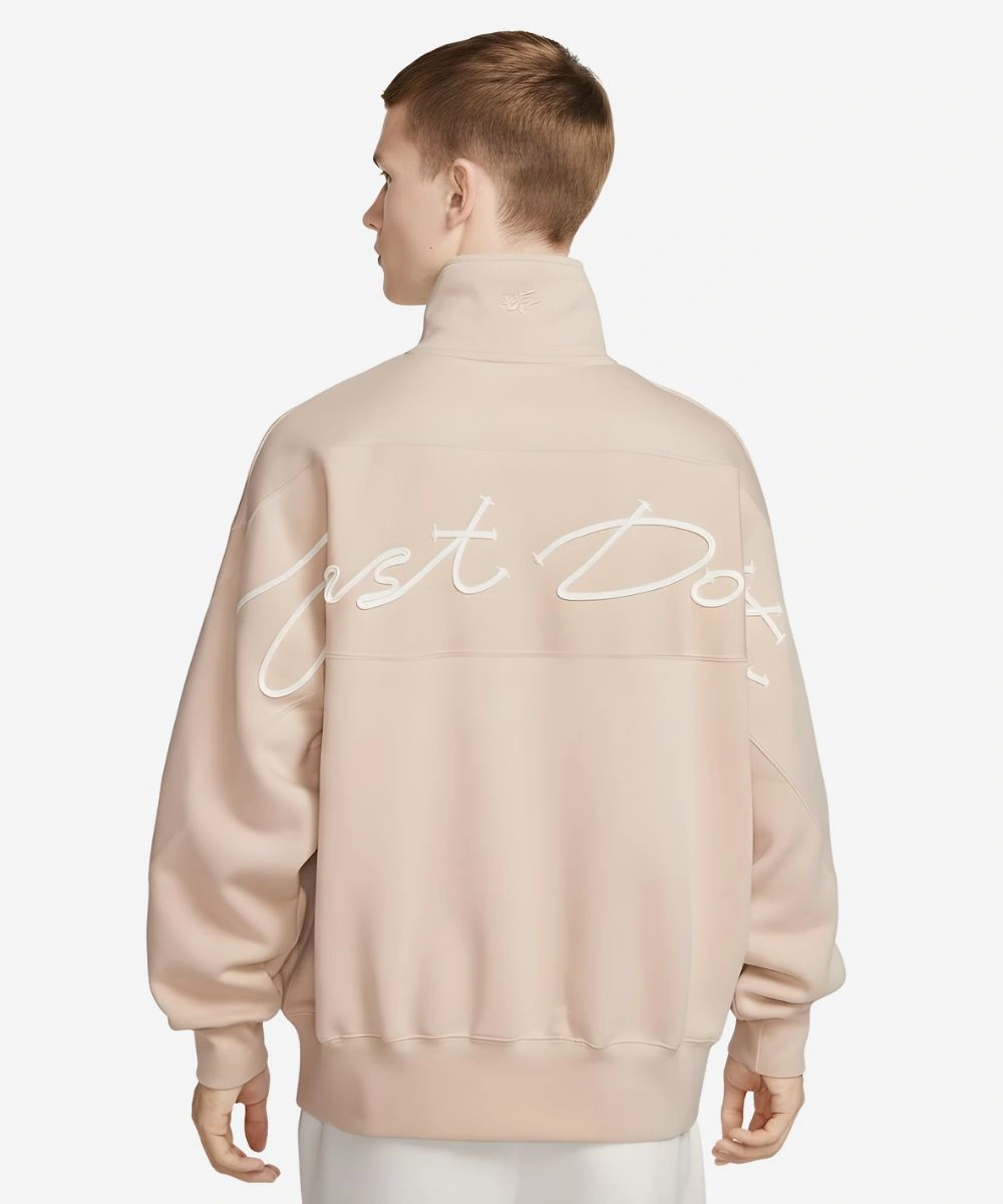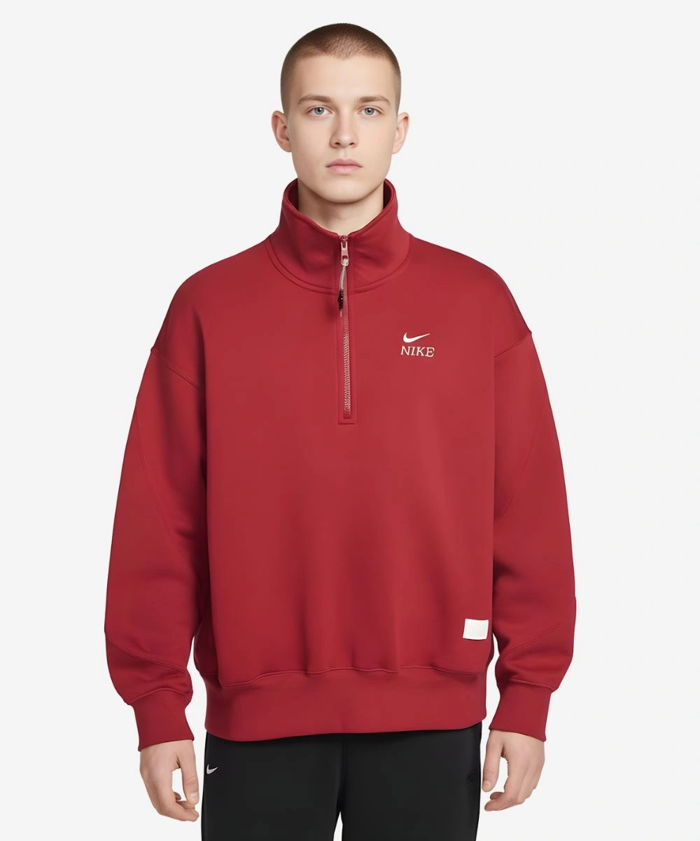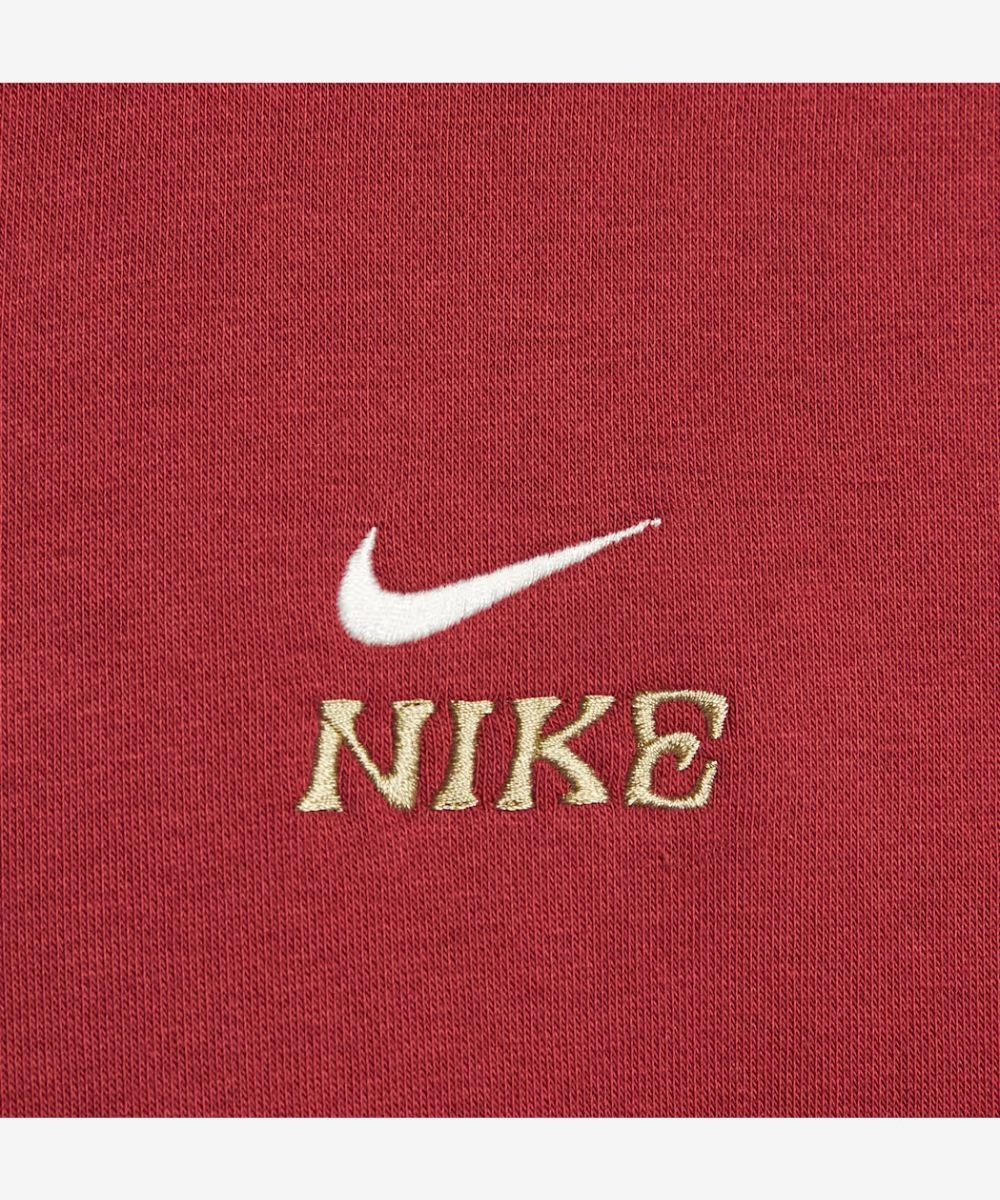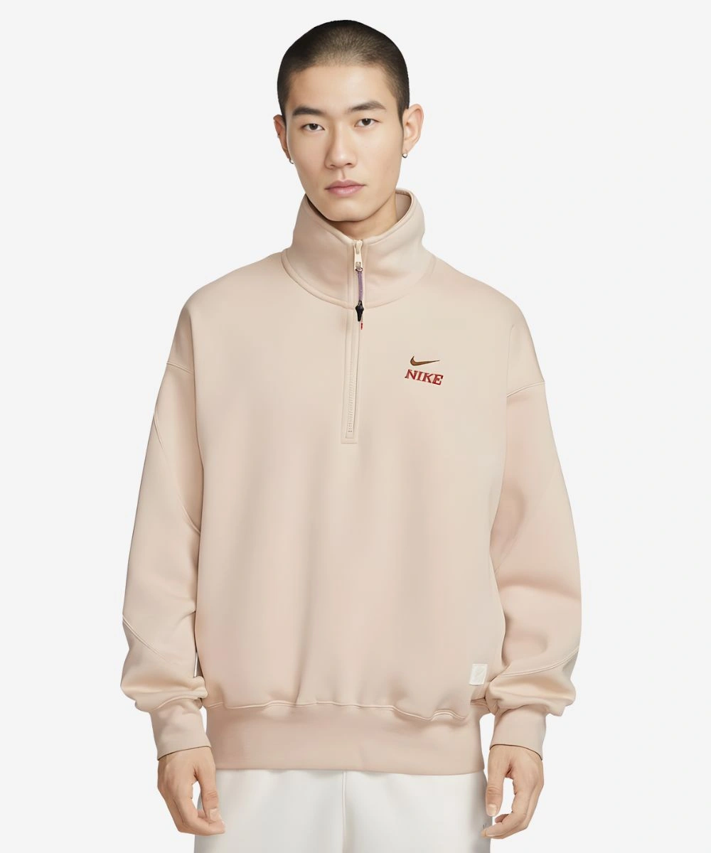 The sweatshirt is created from a high-end, high-loft fleece and comes in a unique beige and maroon colorway that gives it an overall contemporary architectural style. The stand-up collar is fastened with a half-zip pullover so you can customize your ventilation and look, while the heavy rib-knitted cuffs help keep your sleeves locked in place for the perfect fit. The look is centered around detailed graphics on the chest, highlighted by a specialized 2026 LNY emblem and Nike swoosh. A woven commemorative patch sewn at the hem, for a tactile and collectible touch.