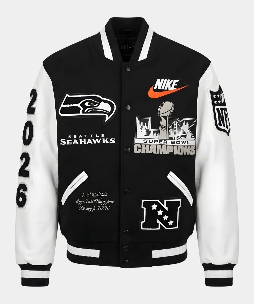 American Football Coach 2026 Mike Macdonald Seattle Seahawks Nike Super Bowl LX Champions Jacket – Black & White